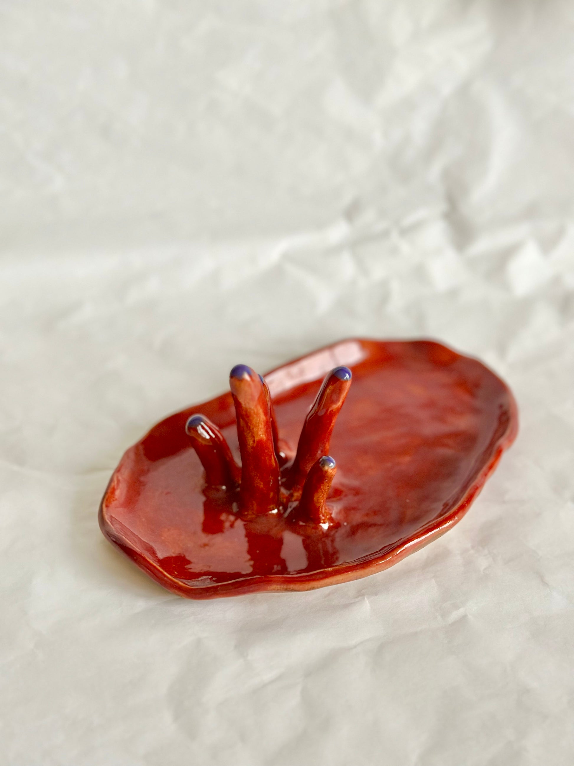 Unikalna ręcznie robiona podstawka na biżuterię o nieregularnym organicznym kształcie. Sprawdzi się również jako samoistny element dekoracyjny wnętrza.