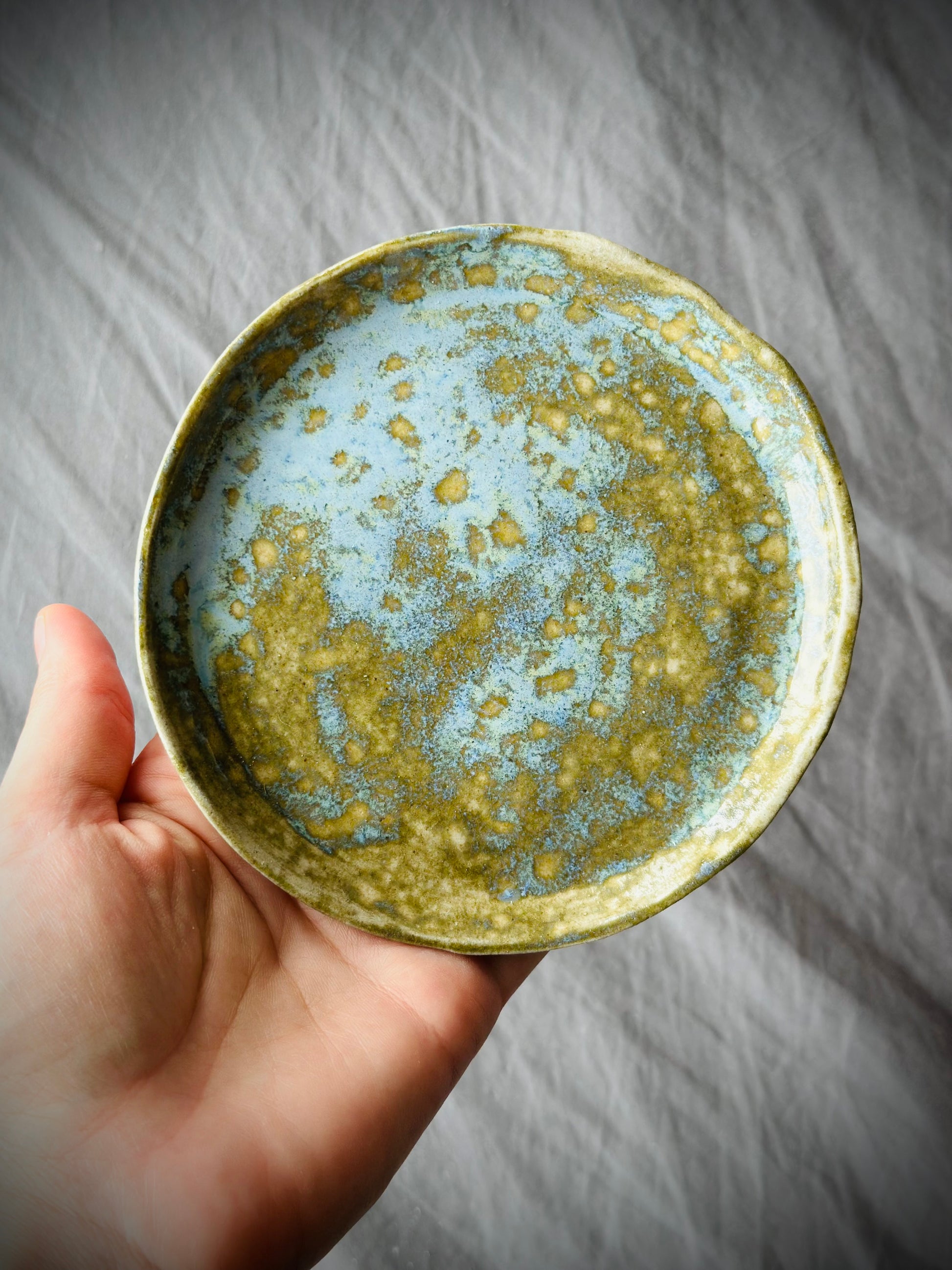 Ręcznie wykonany, mały talerzyk (spodek).