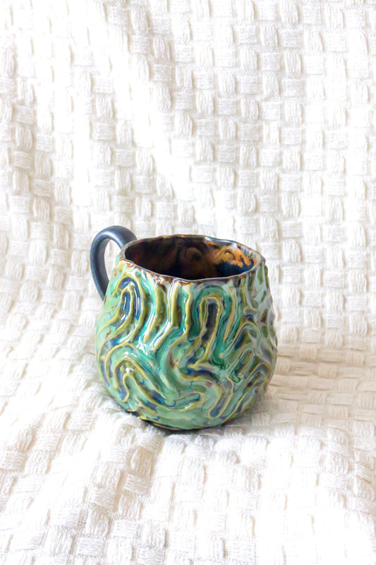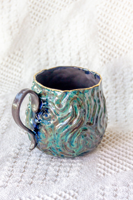 Kubek ceramiczny “Zuma” czarno-zielony ze złoceniem