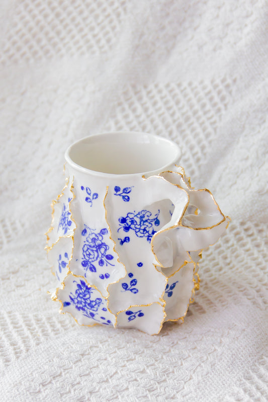 Kubek porcelanowy «Ascydia» biało-granatowy ze złoceniem