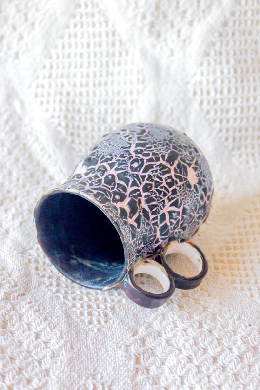 Kubek ceramiczny czarno-różowy z efektem lawy