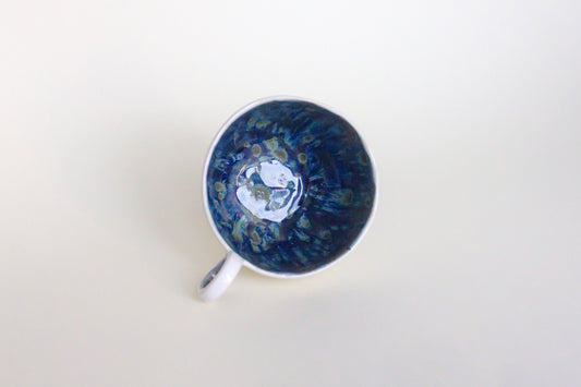 Kubek ceramiczny w kolorze granatowo-białym z plamkami