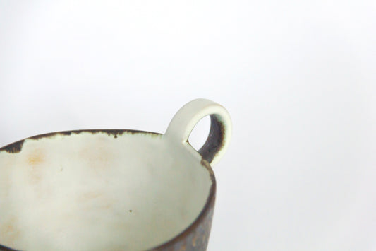 Kubek ceramiczny w kolorze biało-brązowym z plamkami