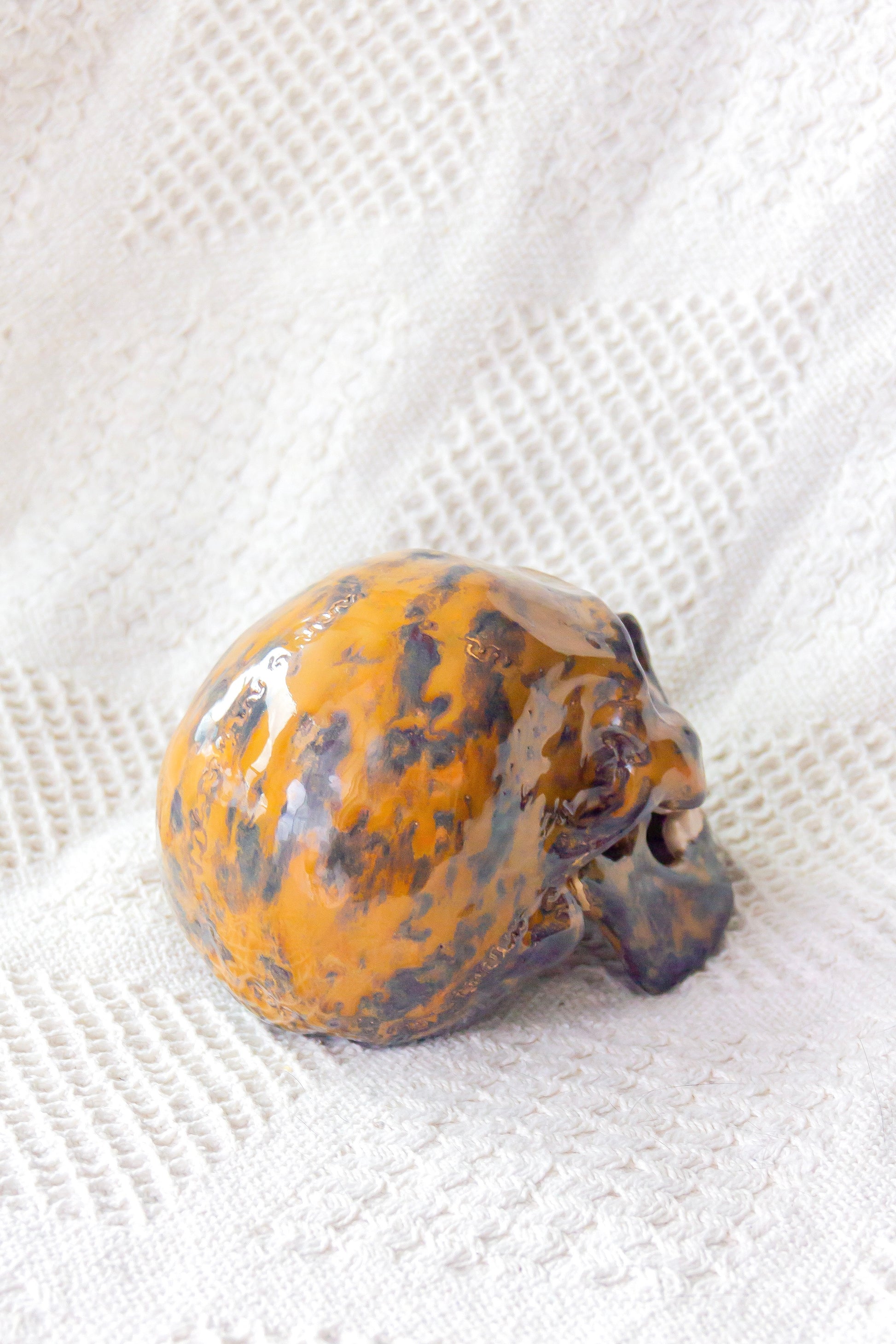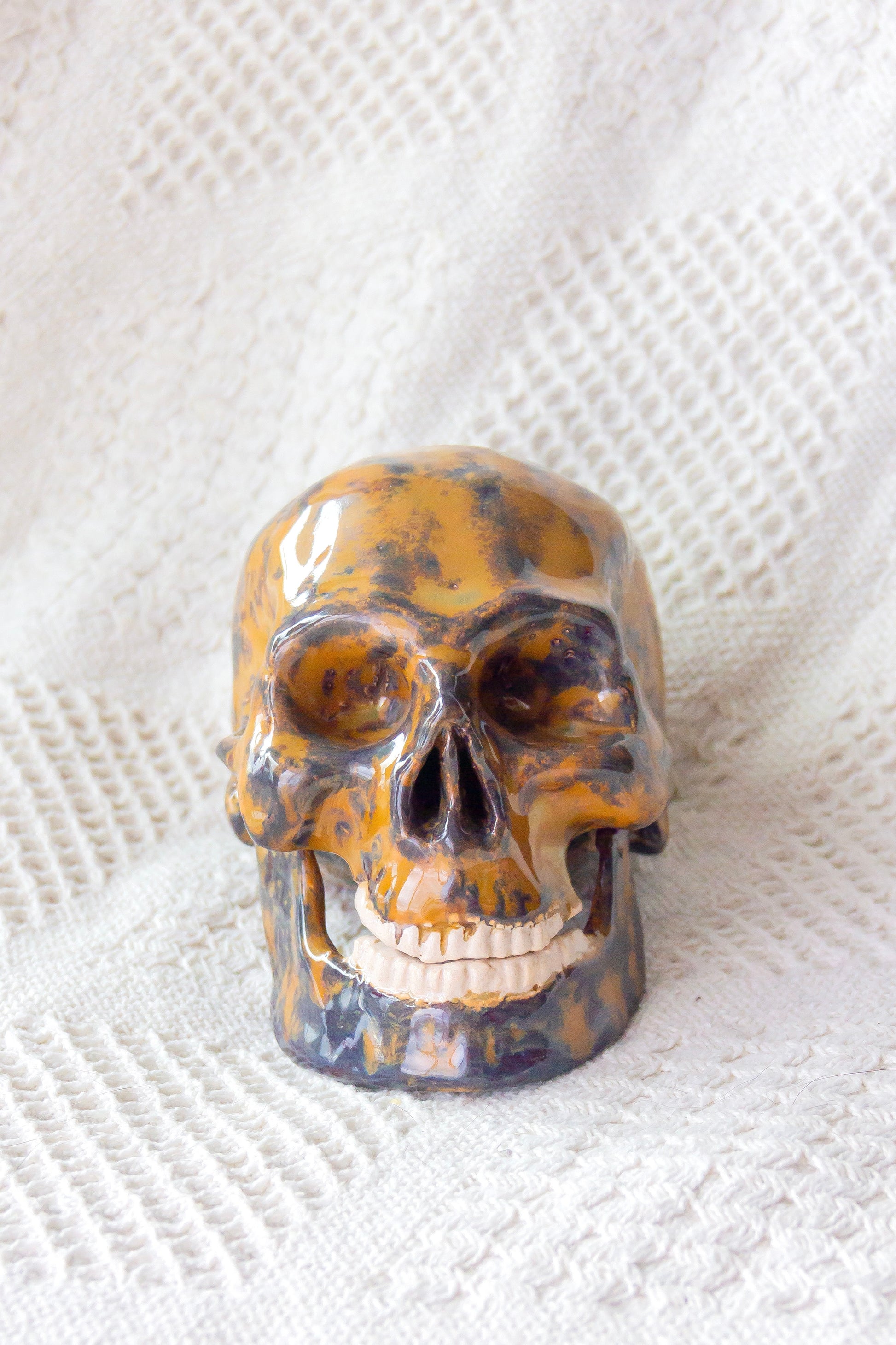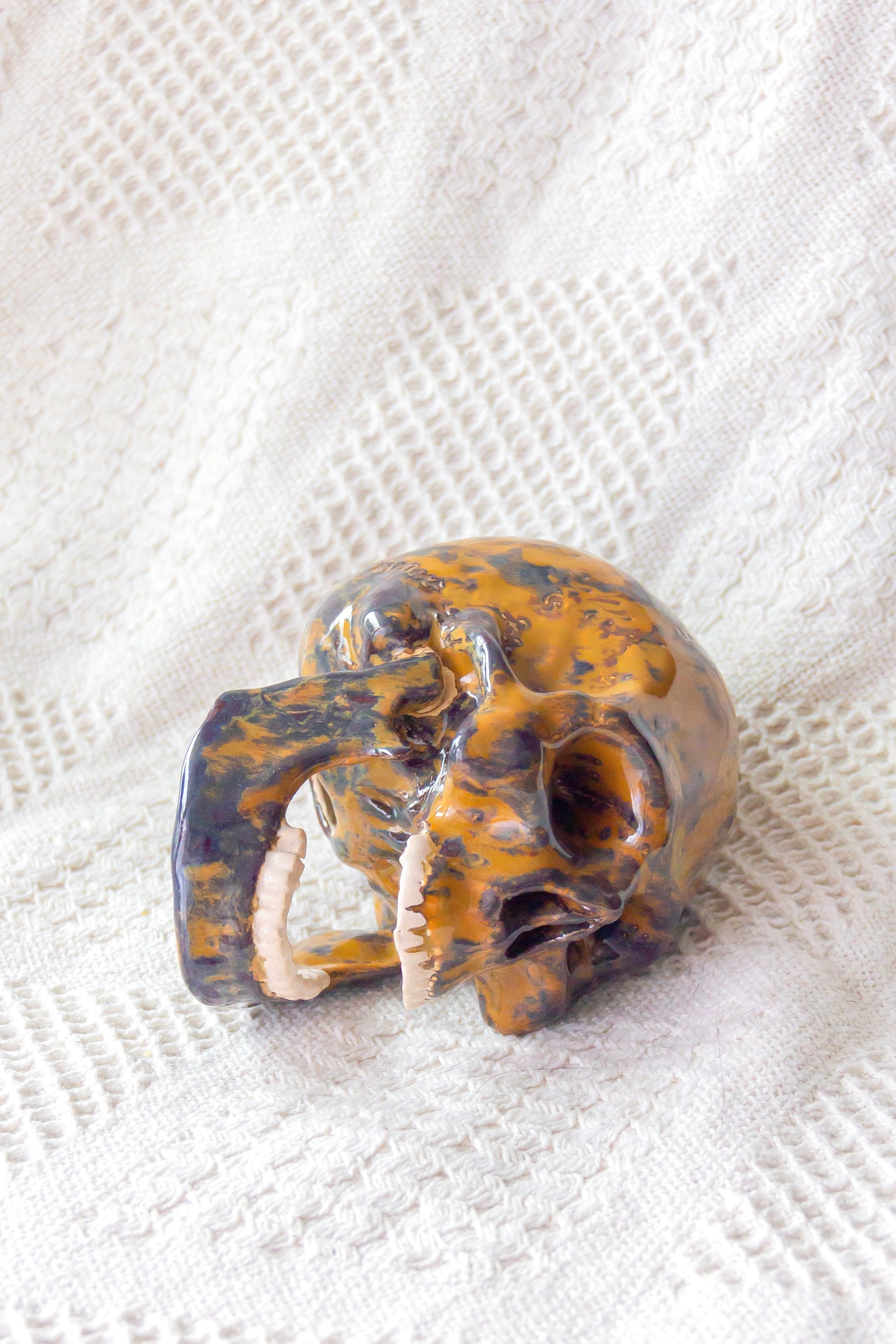 Czaszka ceramiczna brązowo-czarna z ruchomą żuchwą