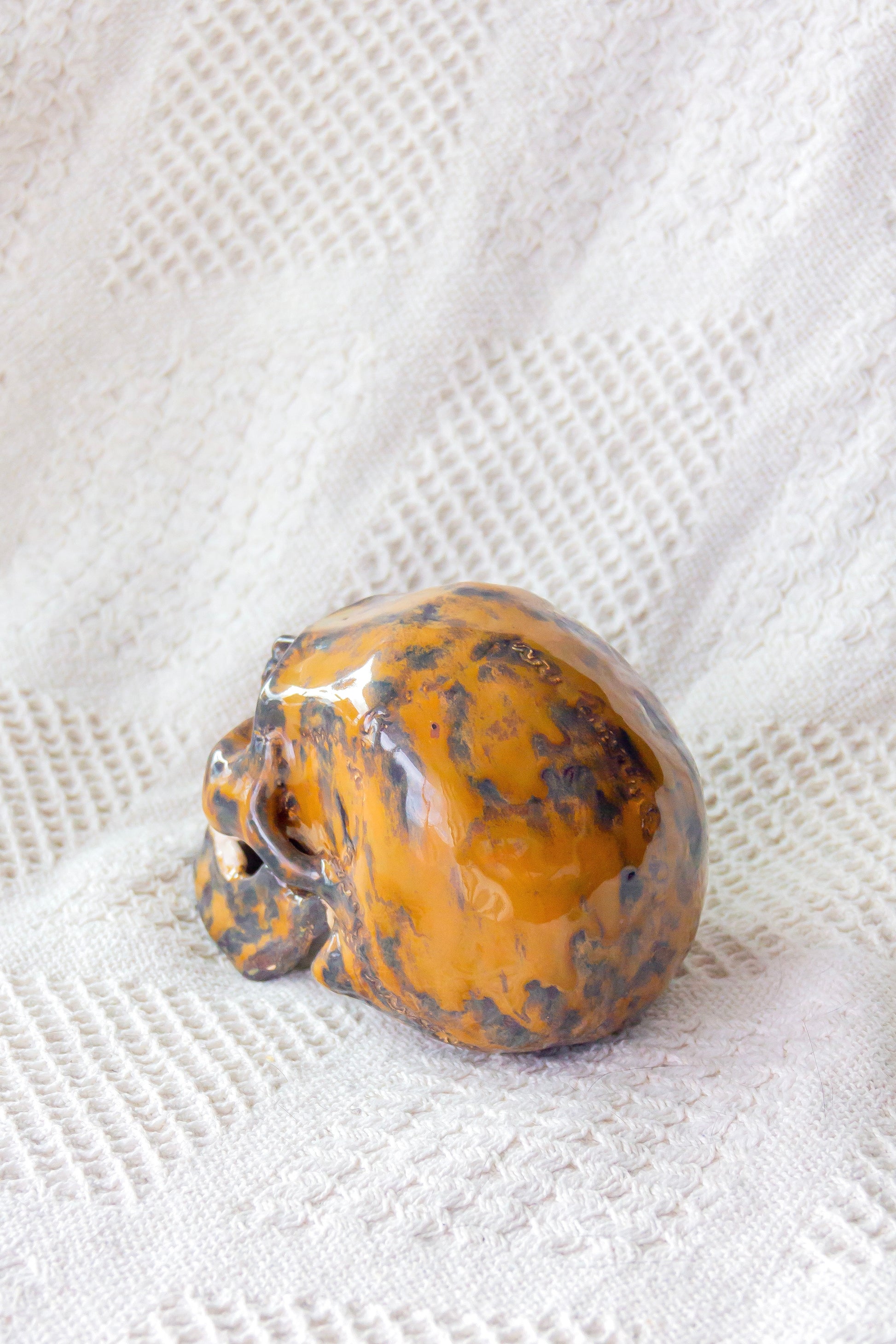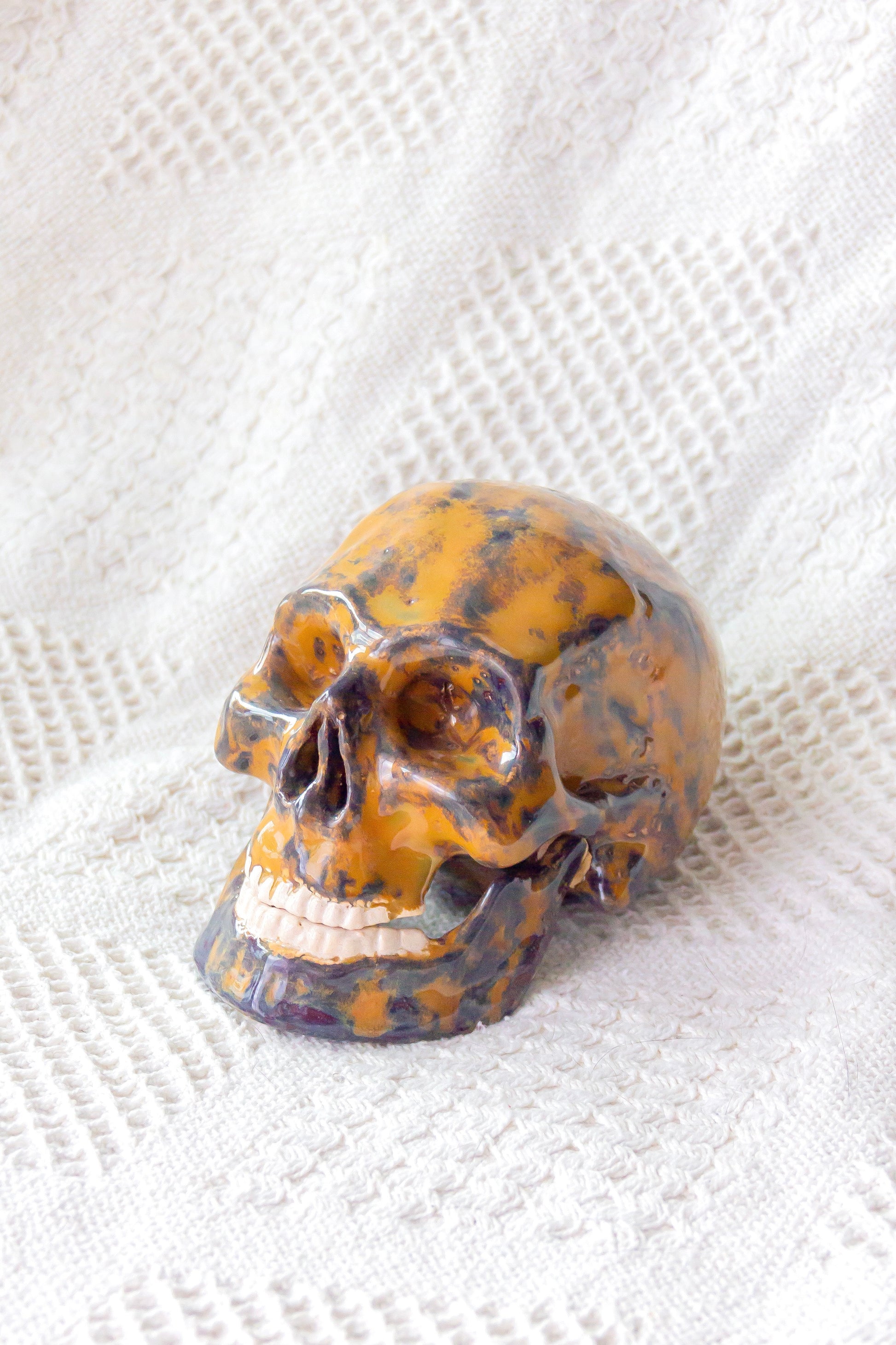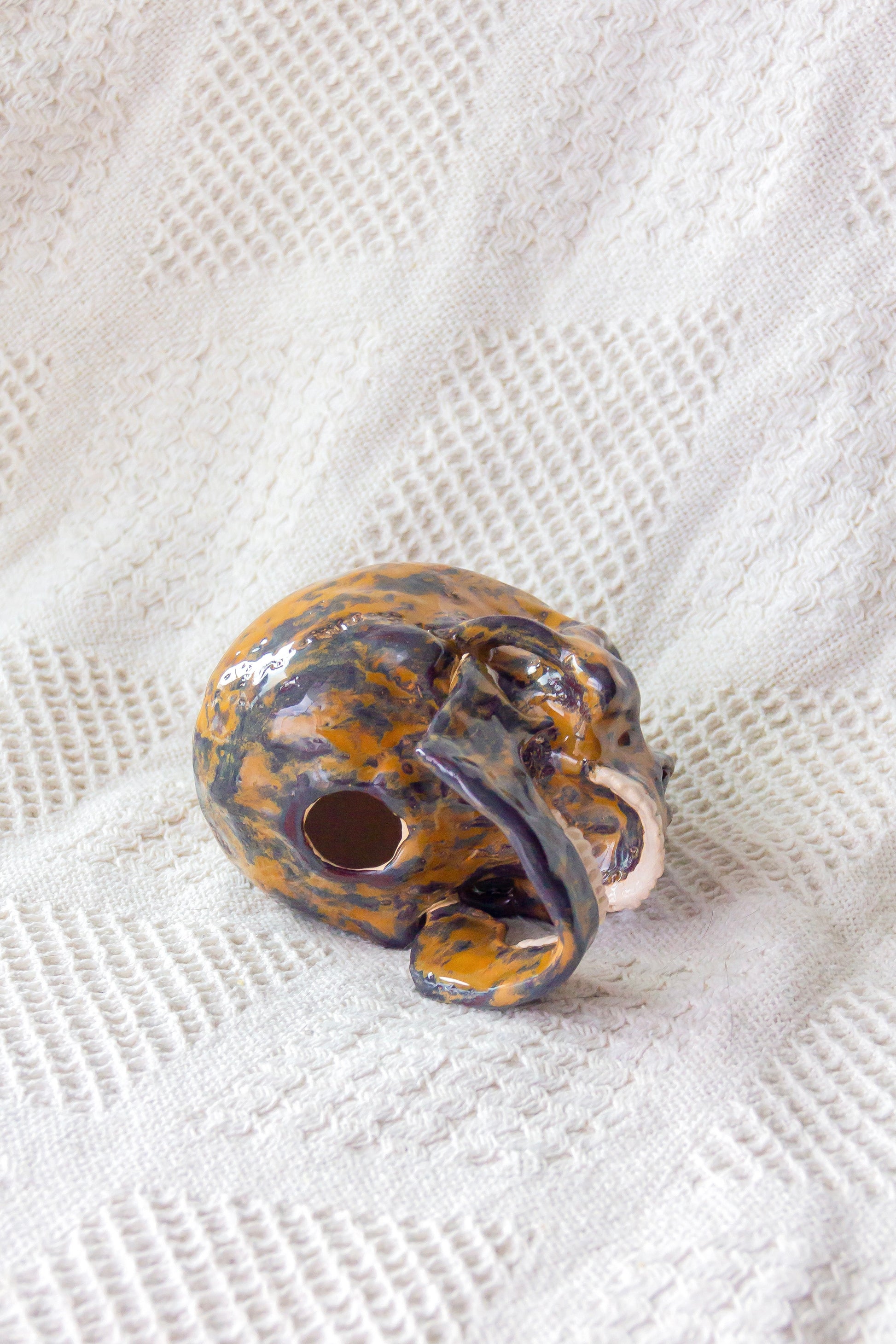 Czaszka ceramiczna brązowo-czarna z ruchomą żuchwą