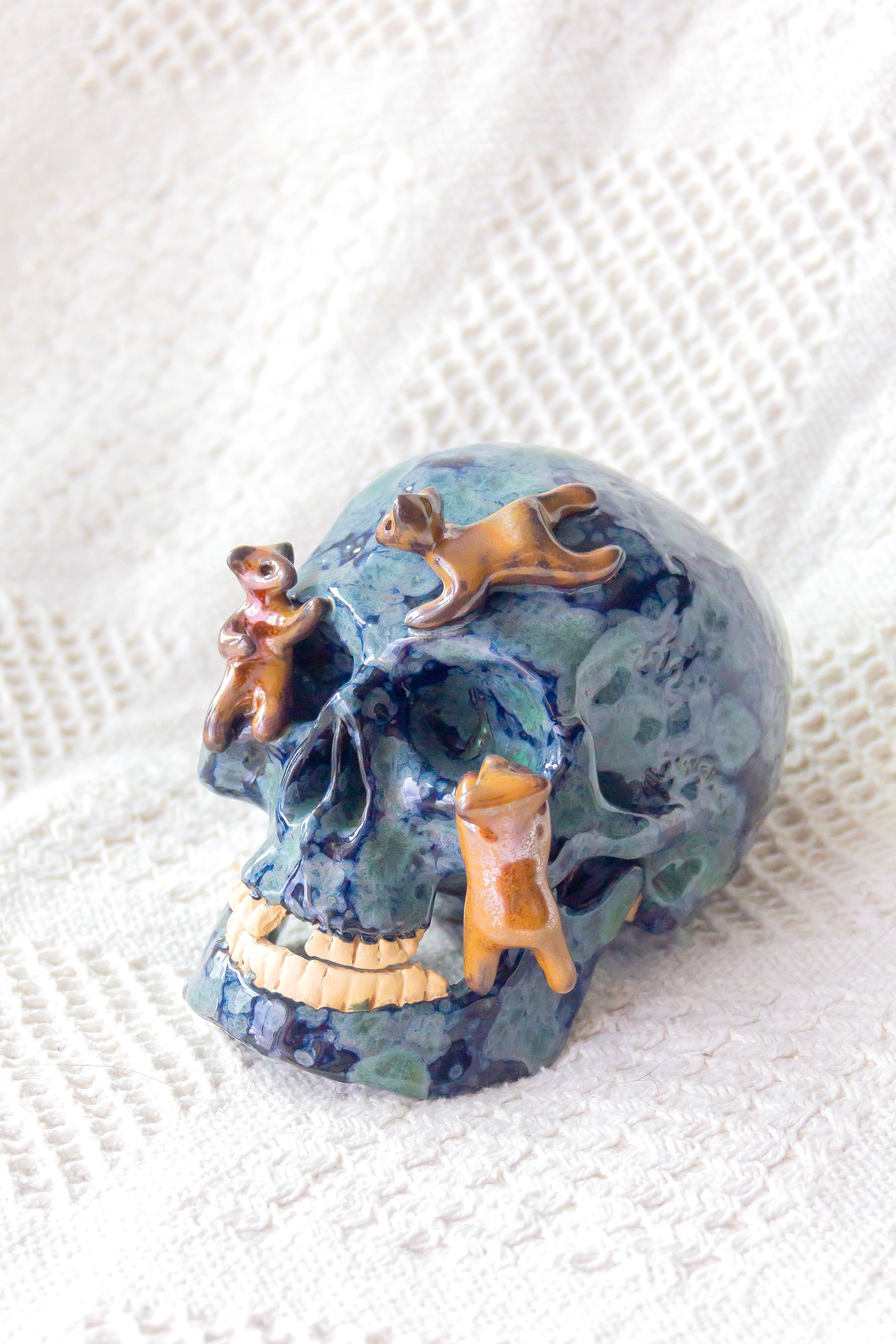 Czaszka ceramiczna czarno-granatowa z werlingami