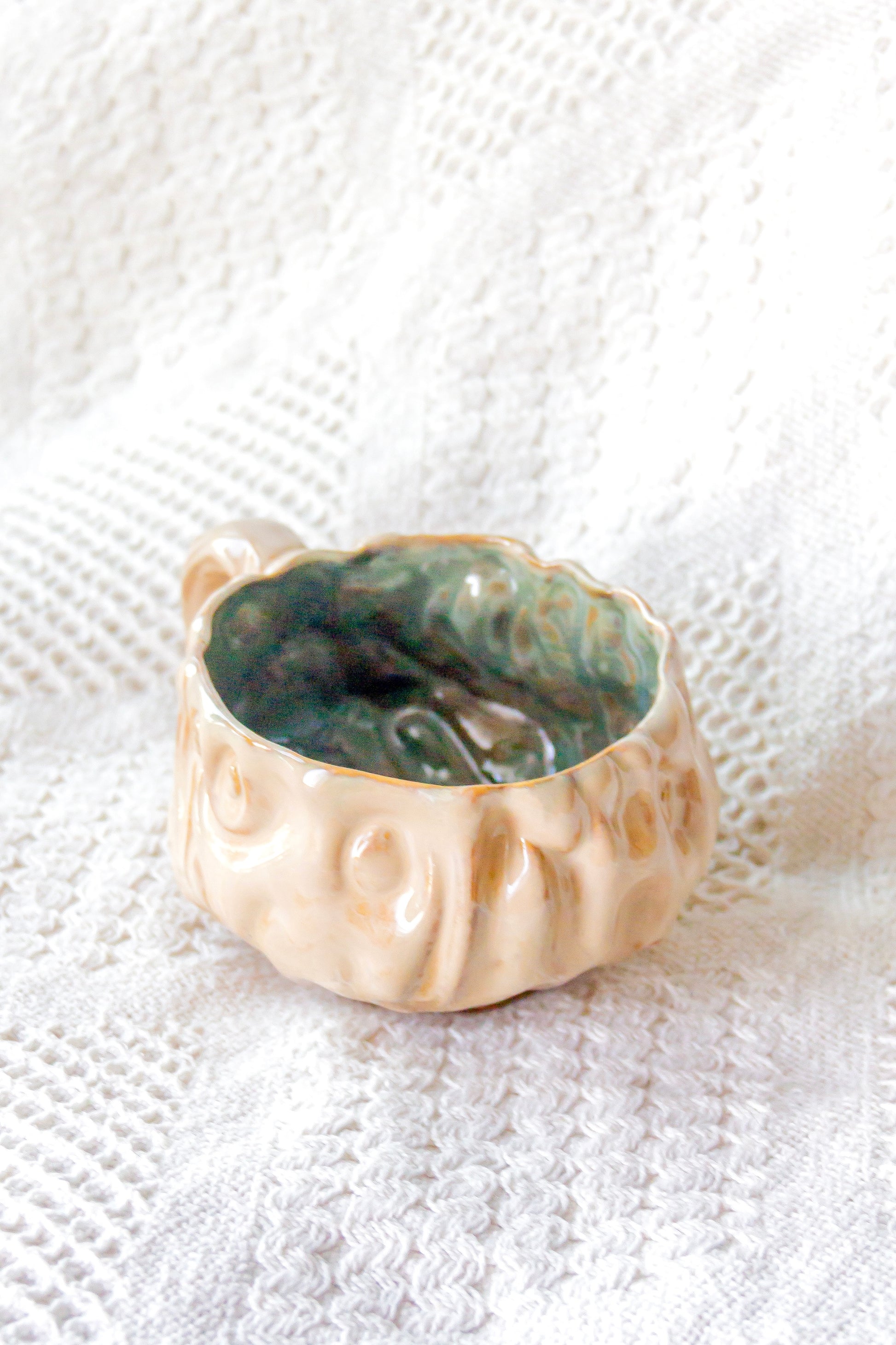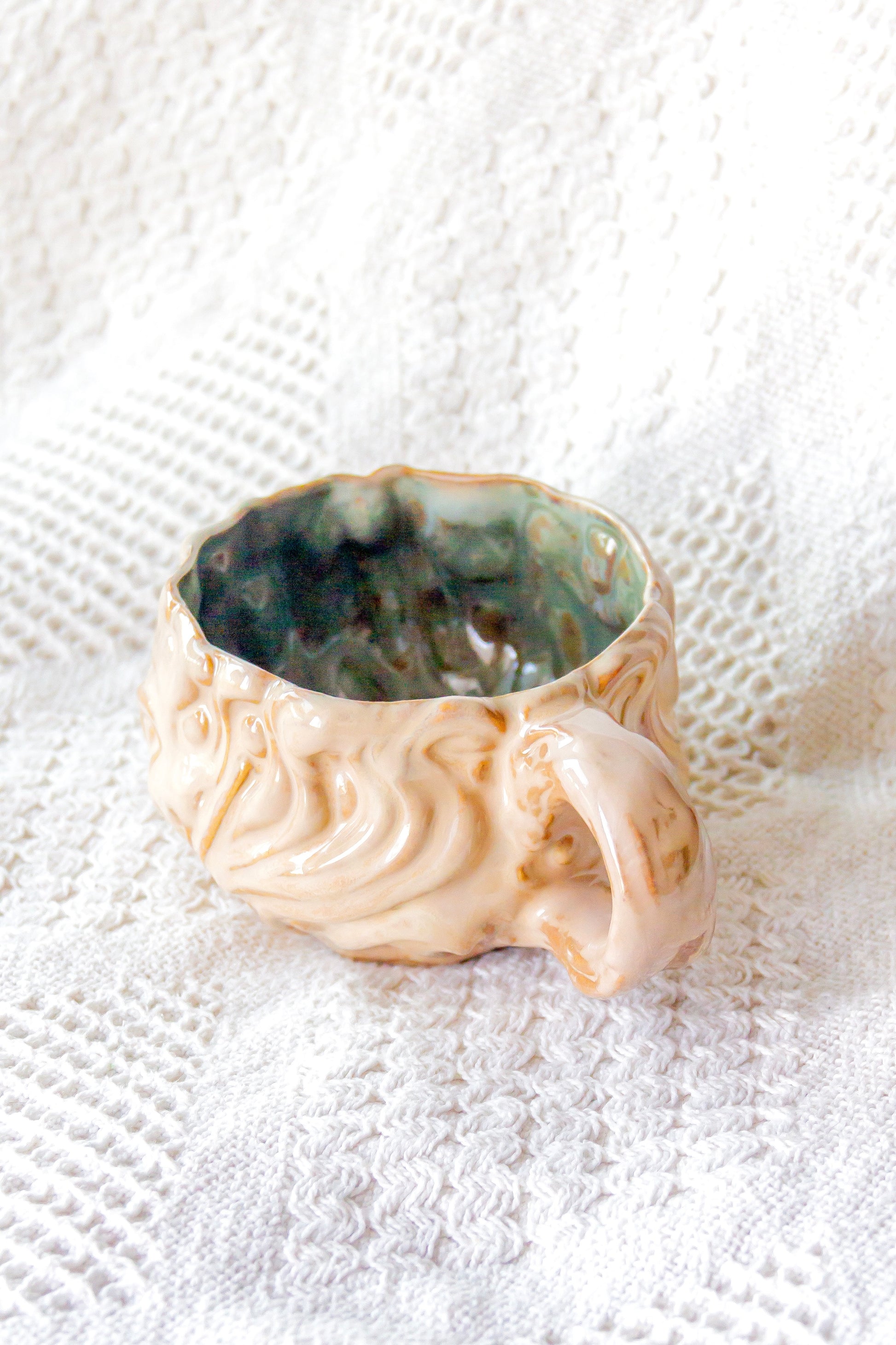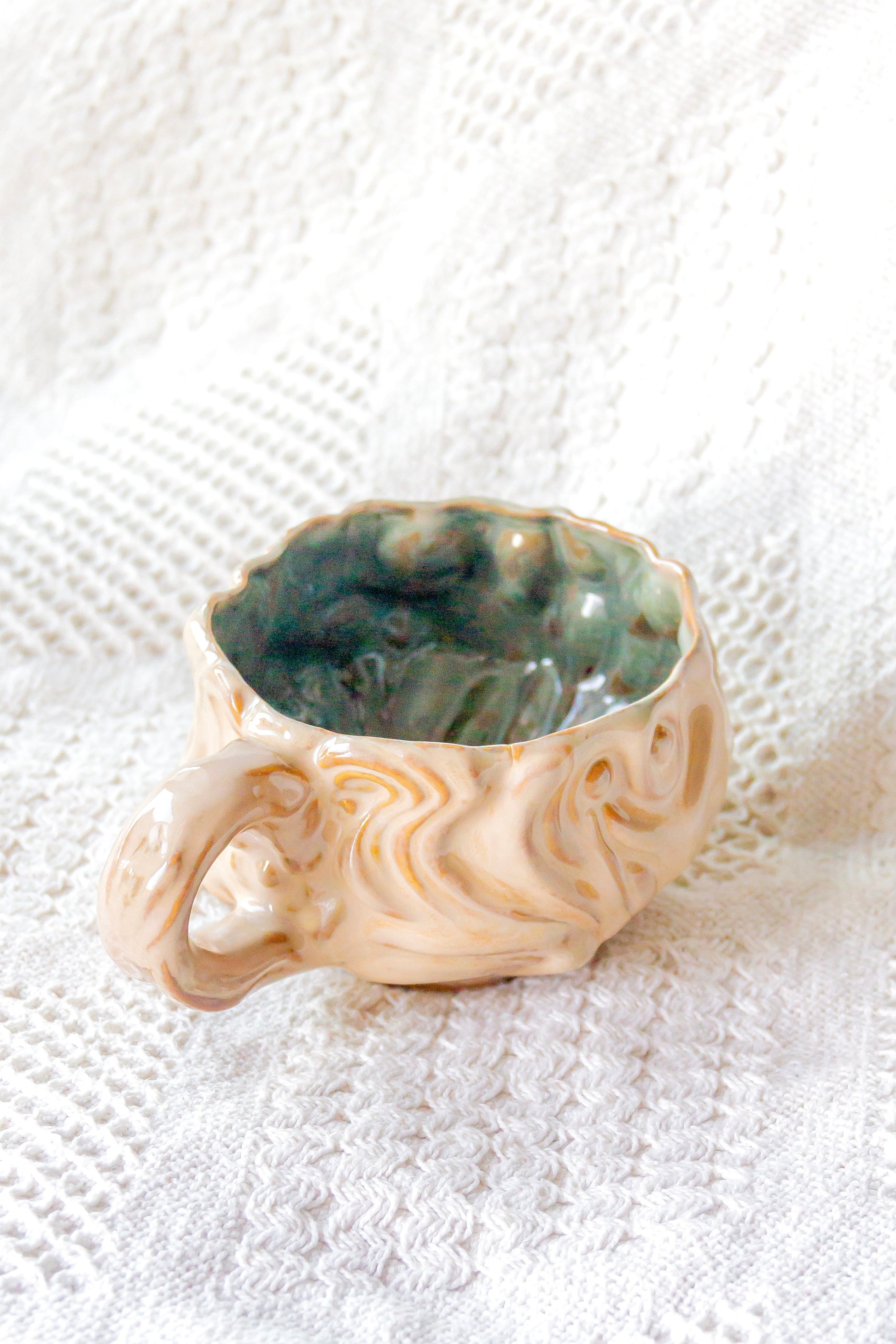 Filiżanka ceramiczna “Kurtina” beżowo-zielona