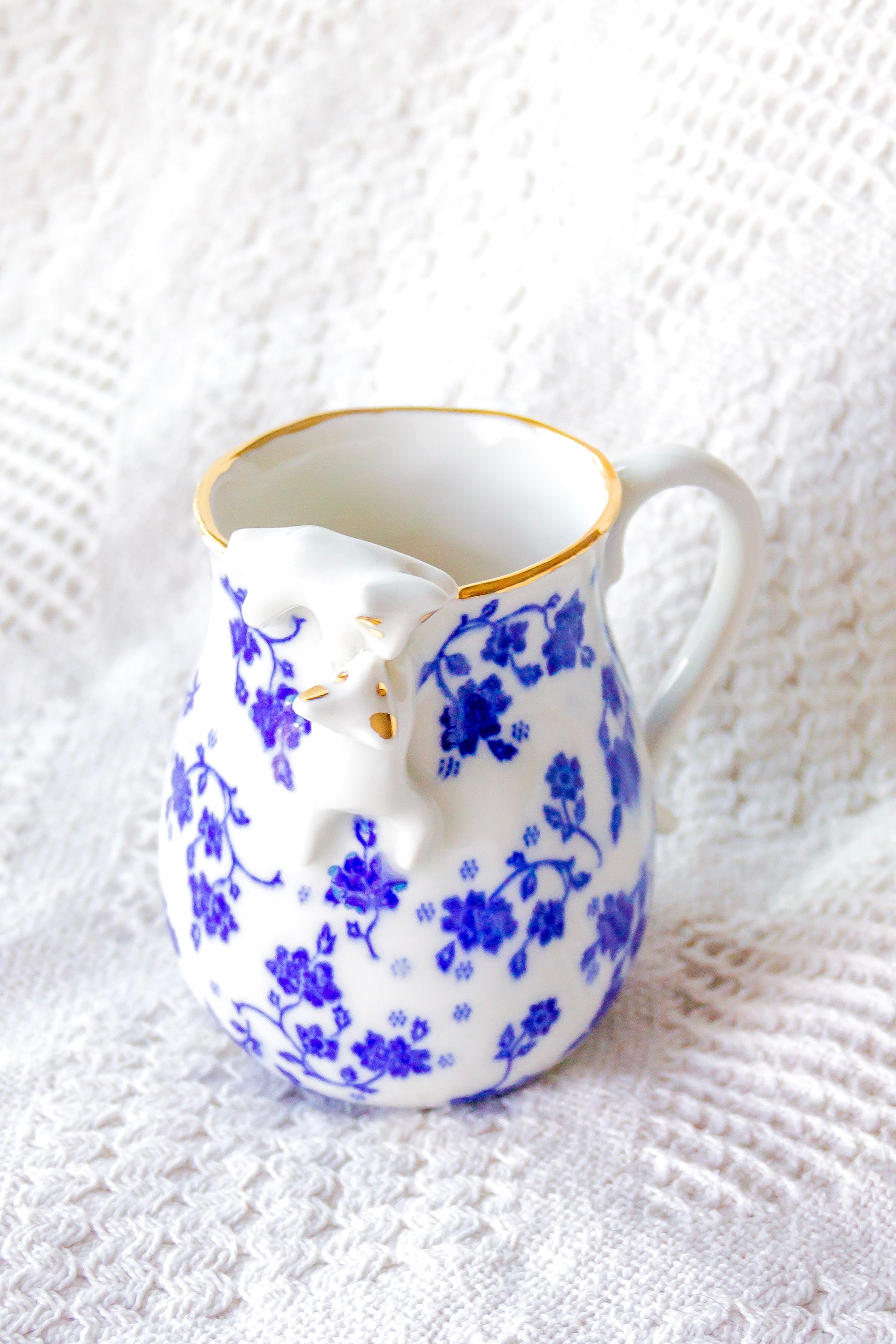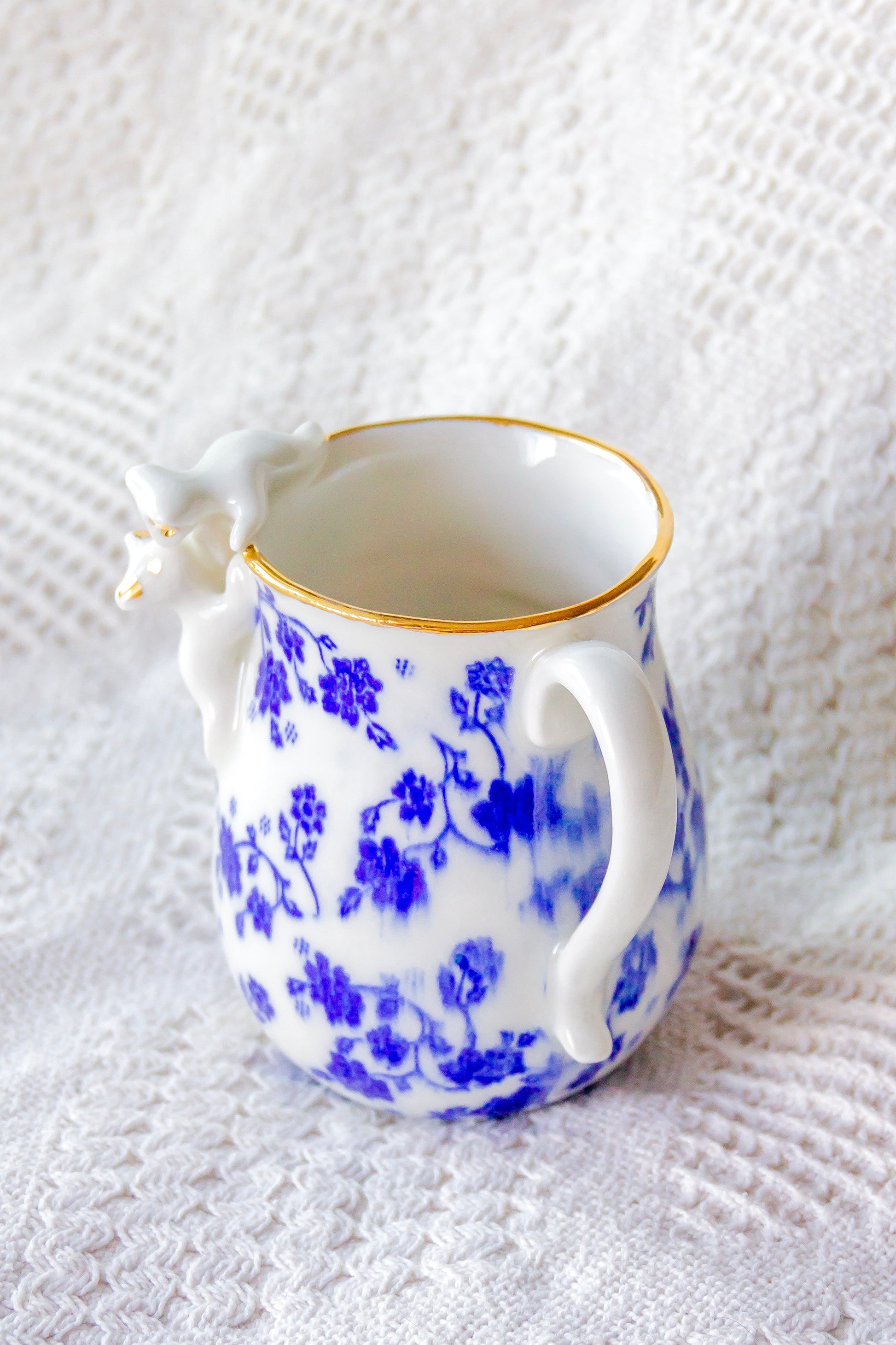 Wyjątkowy, ręcznie robiony kubek porcelanowy.