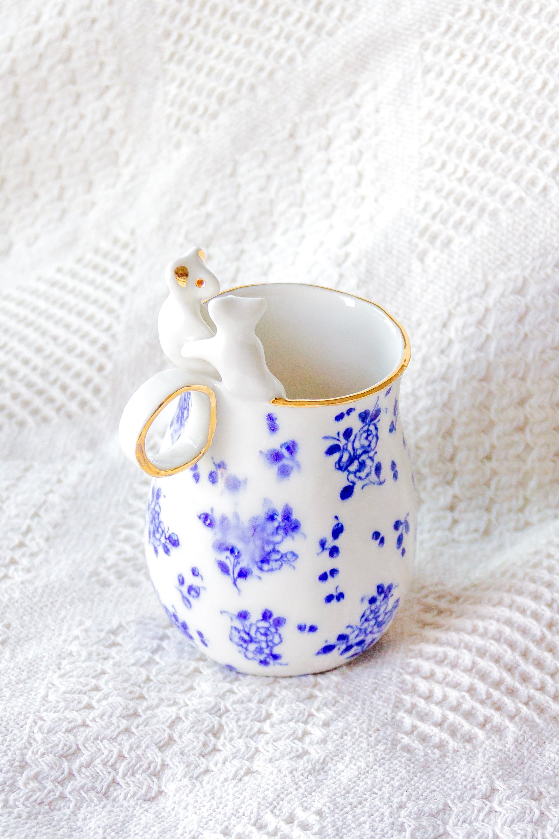 Wyjątkowy, ręcznie robiony kubek porcelanowy.