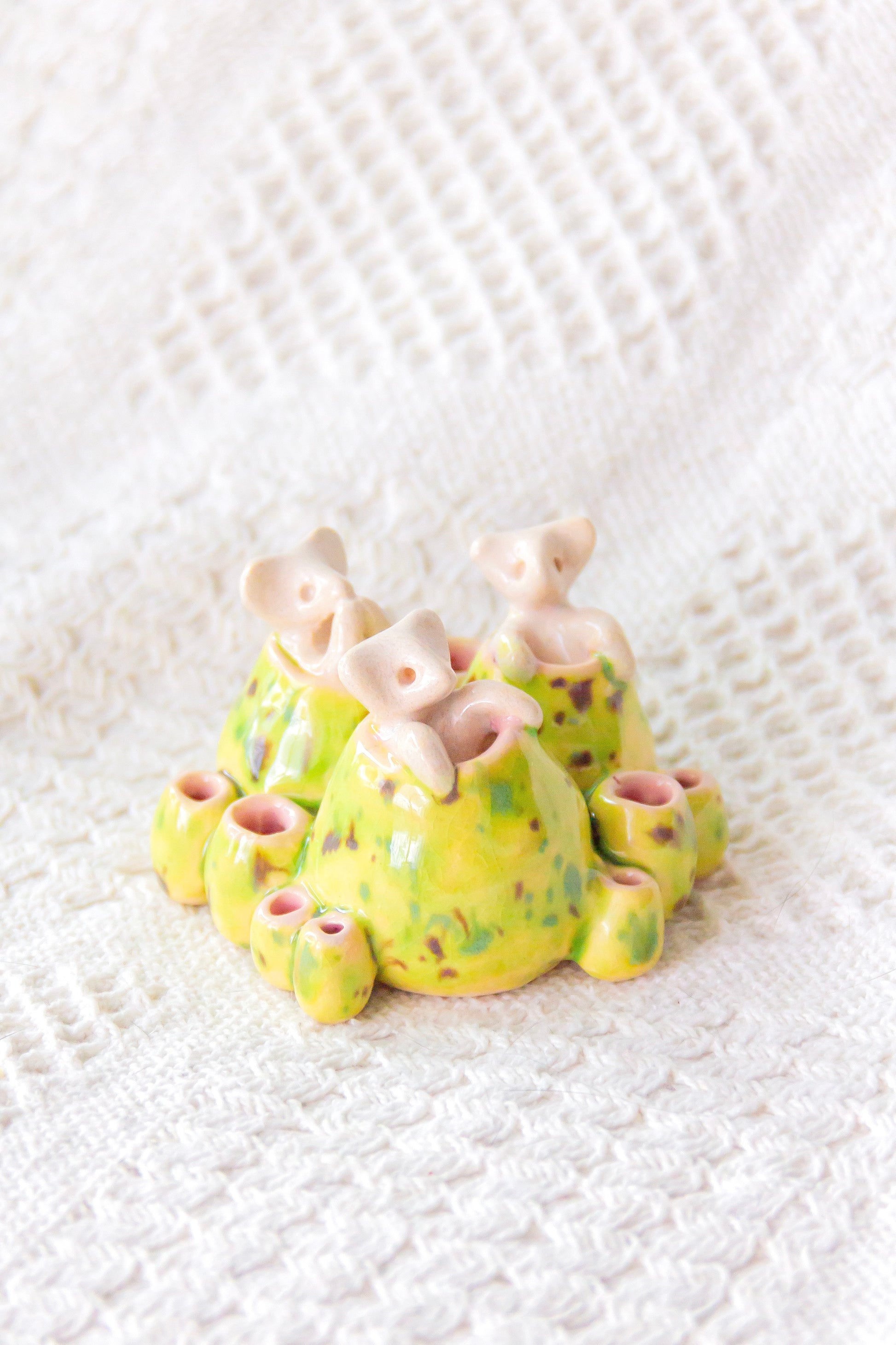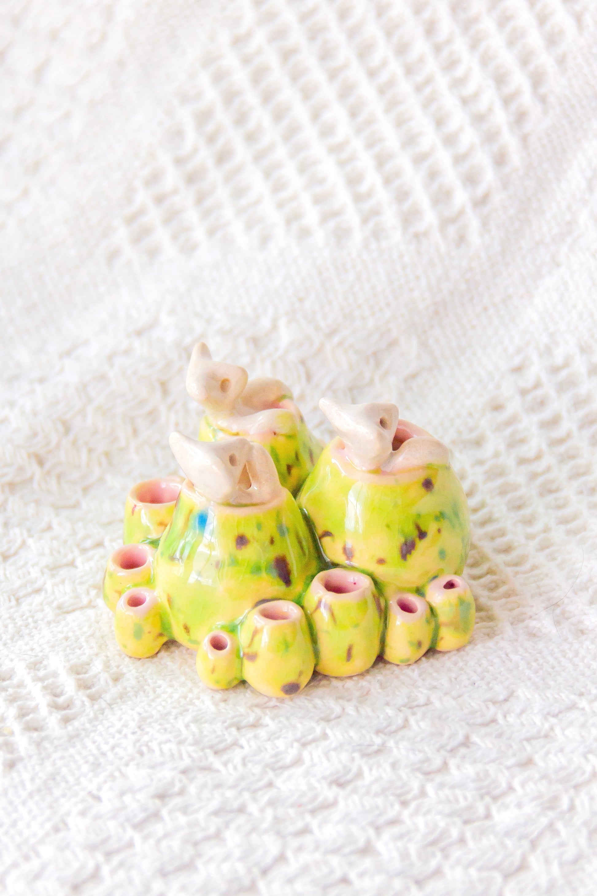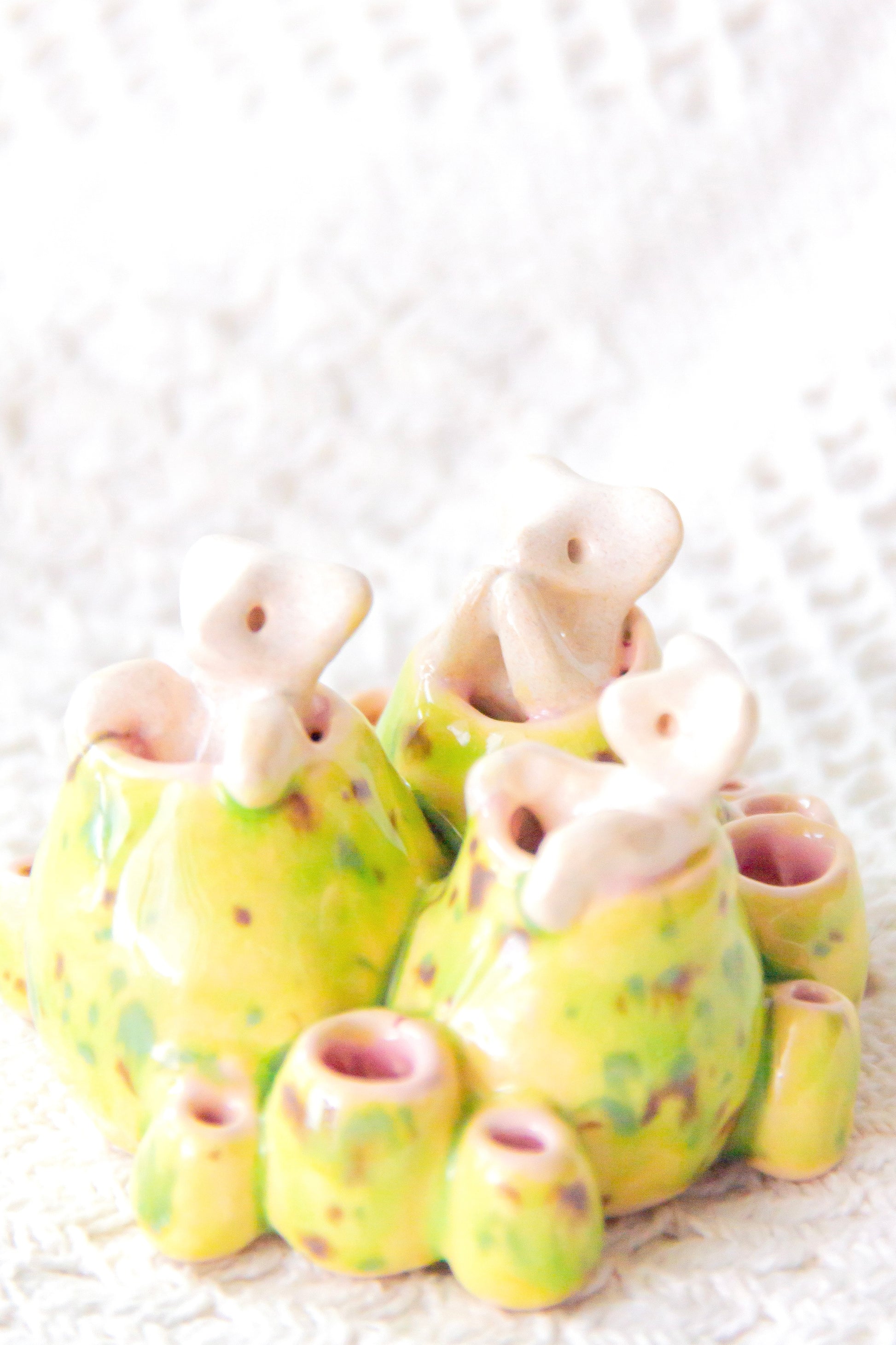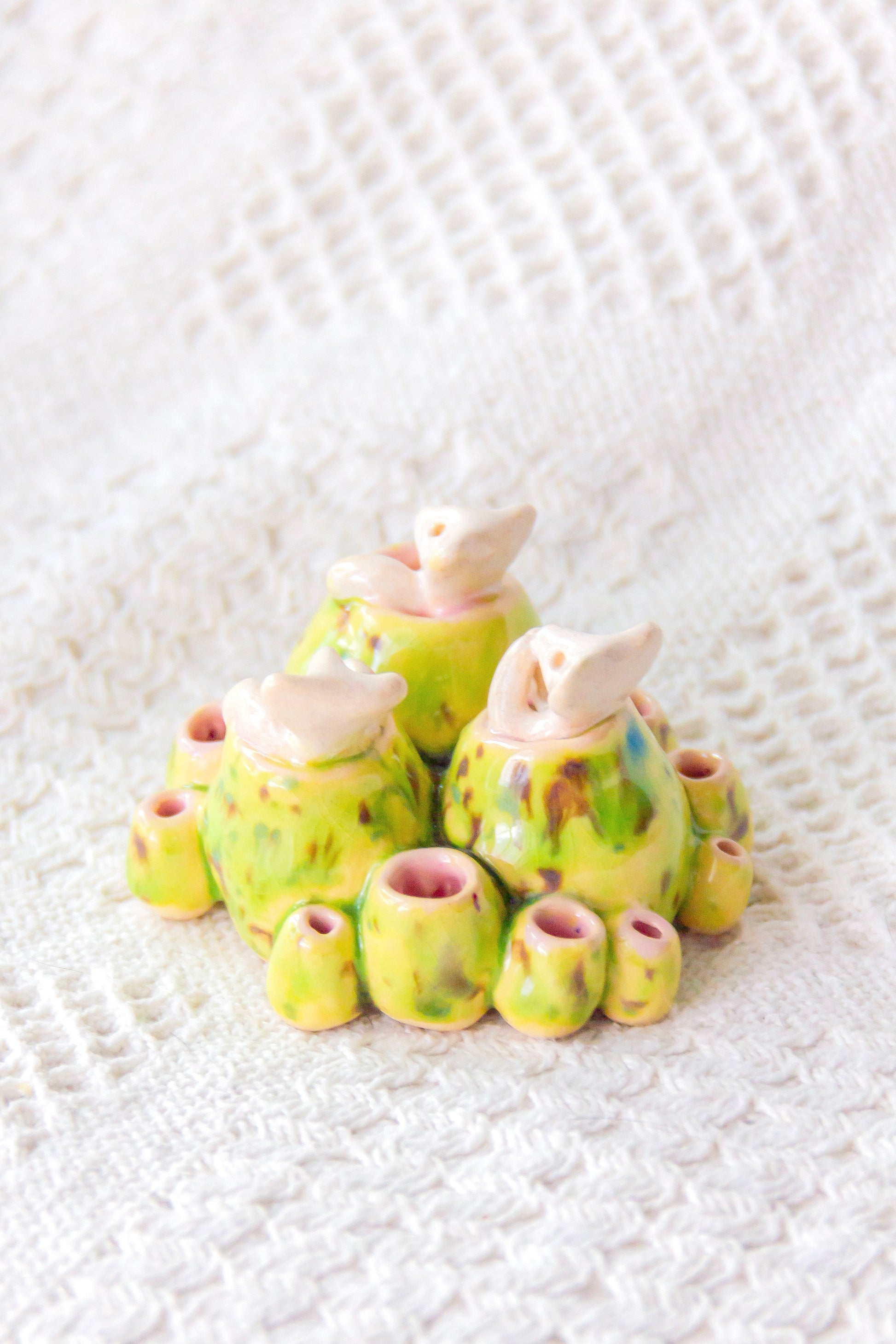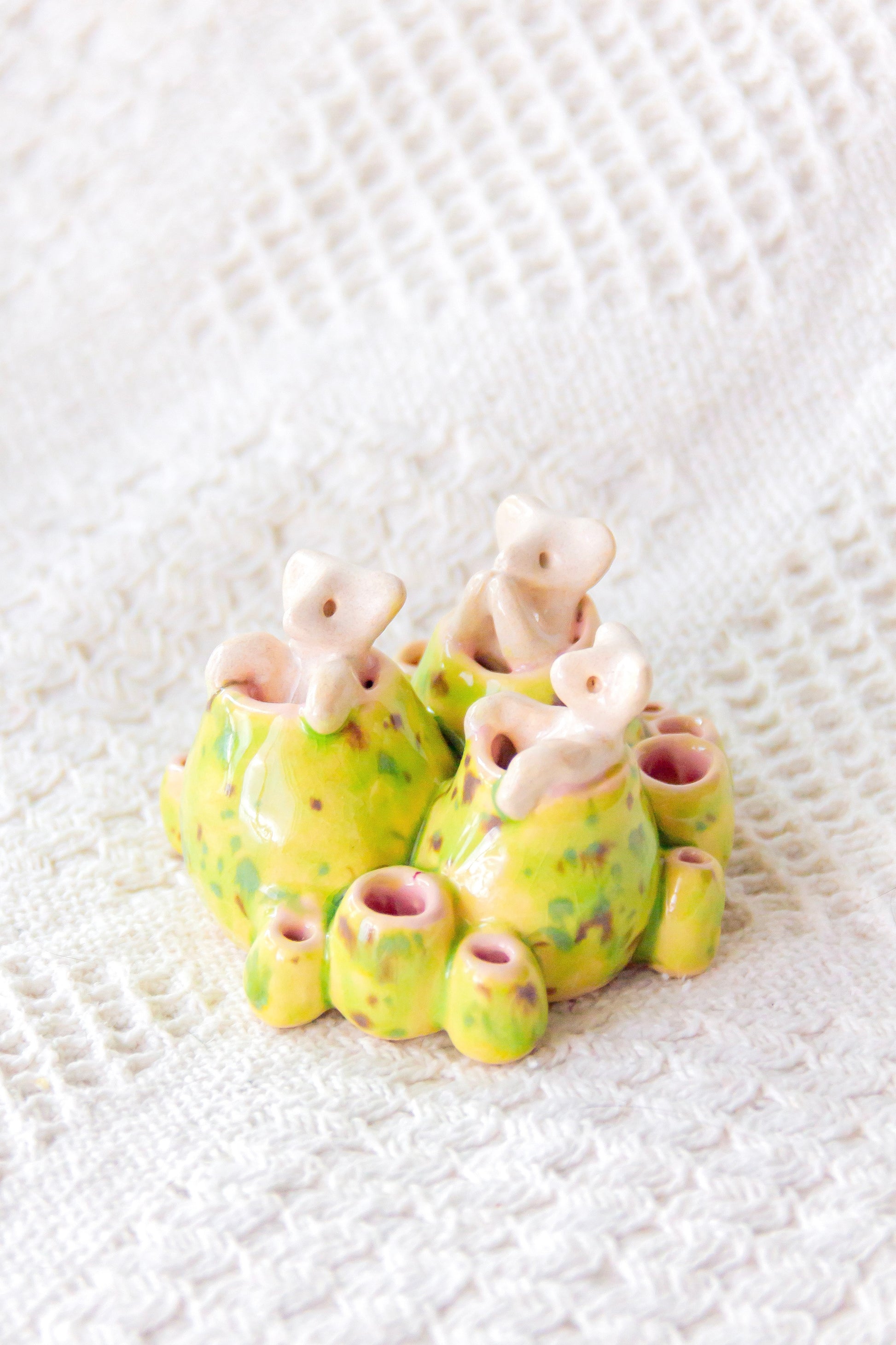 Rzeźba ceramiczna “Ascydia” z werlingami beżowo-zielona