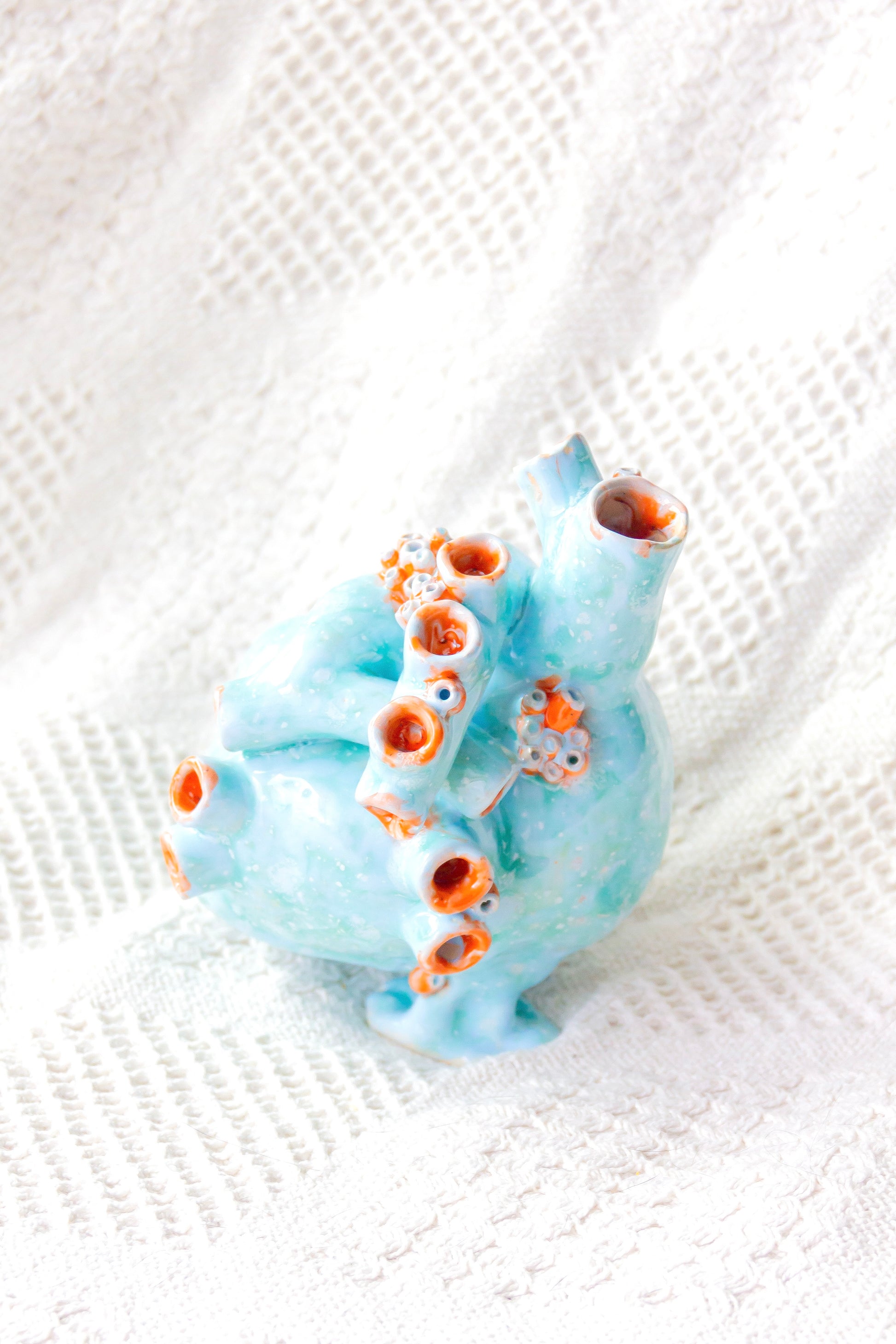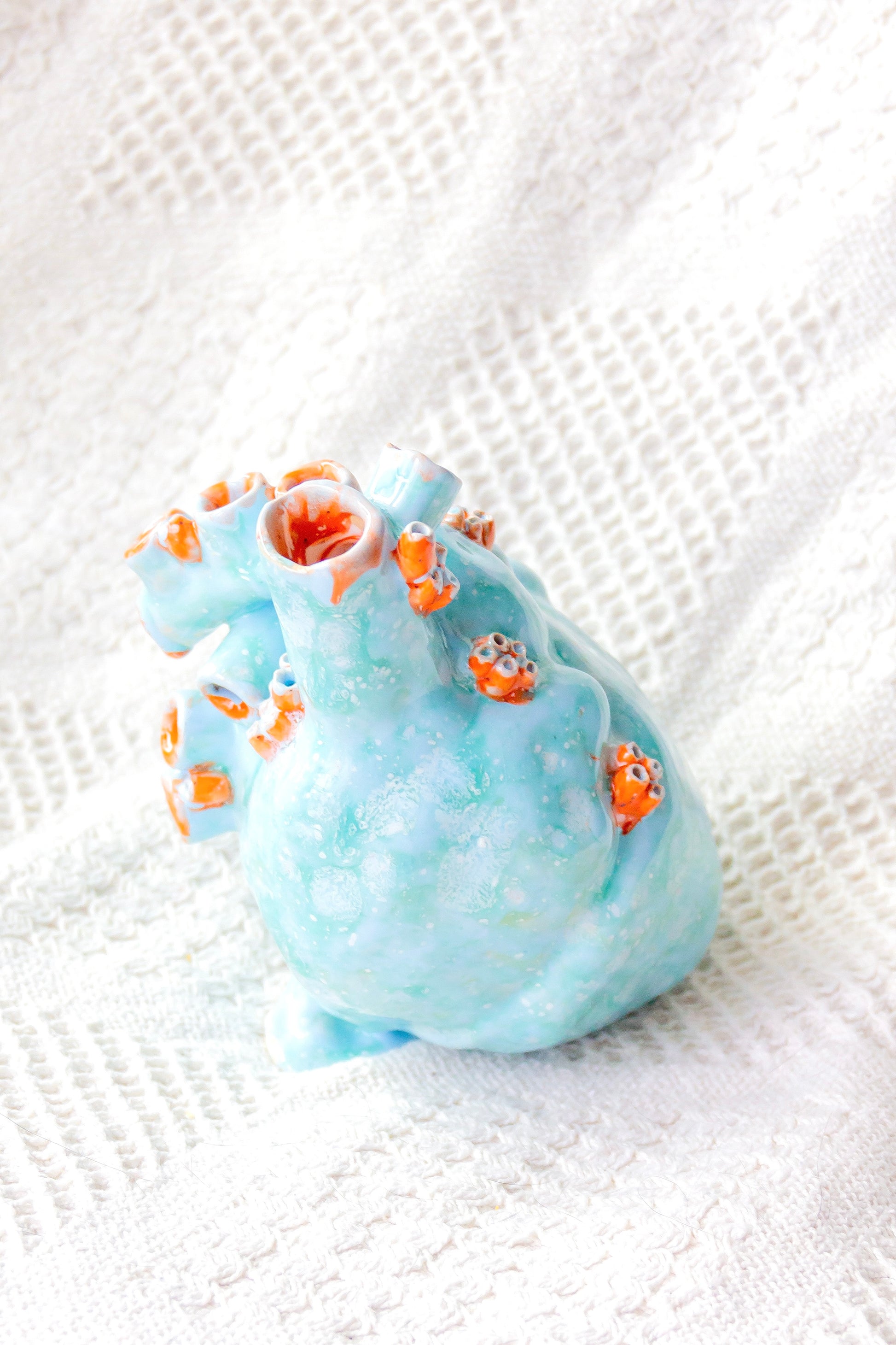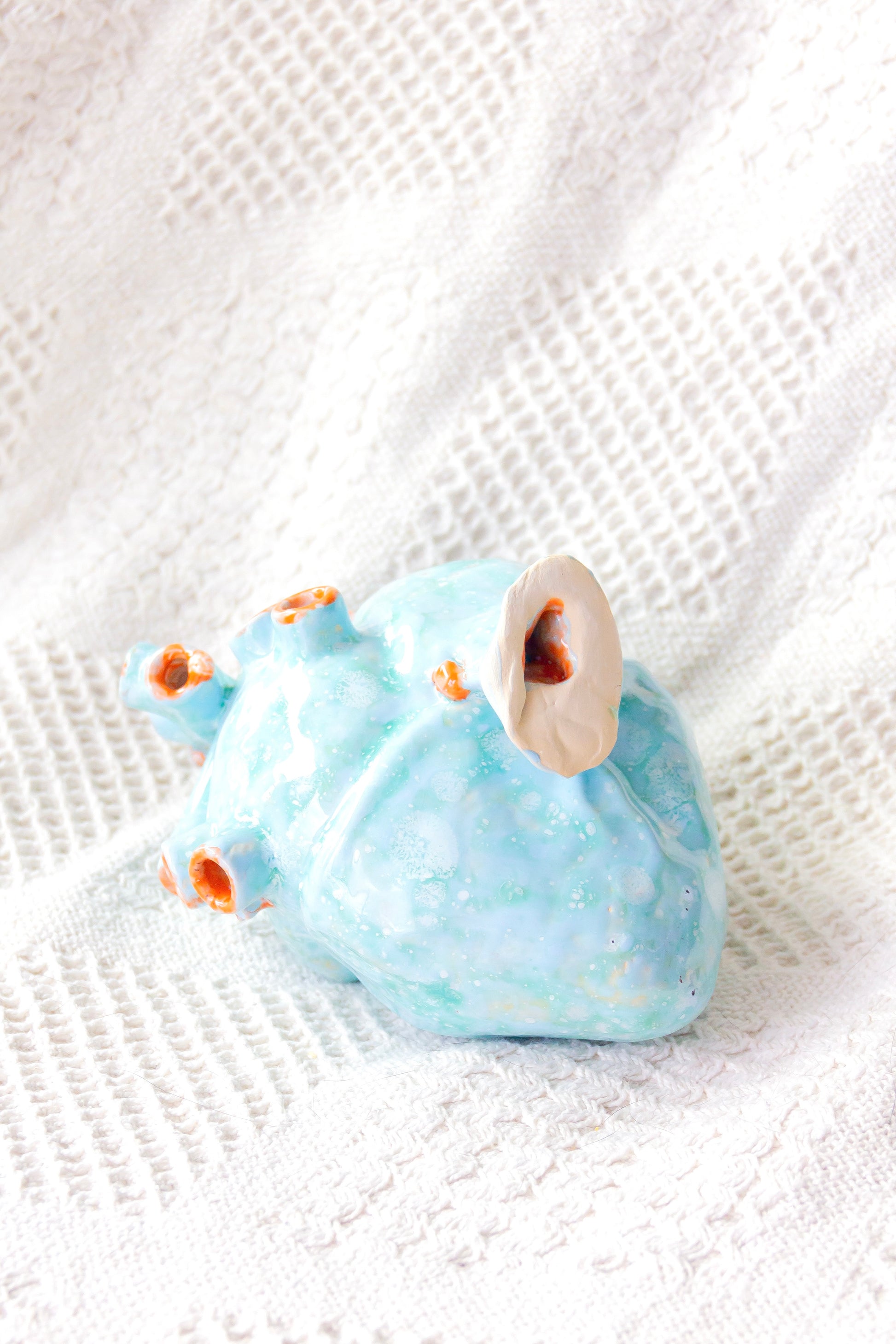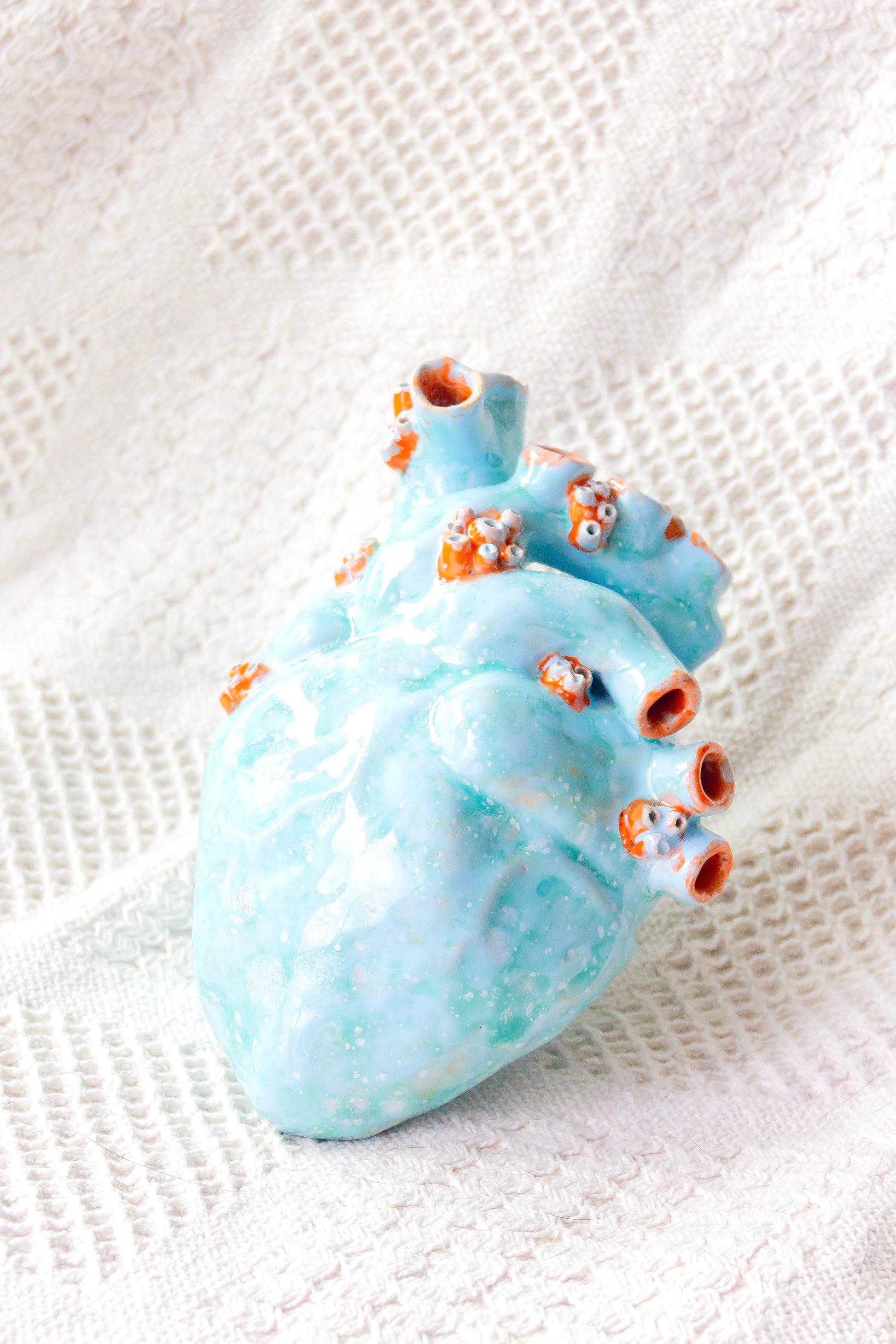 Serce ceramiczne dekoracyjne. Jest szkliwione w środku i ma otwór lub kilka otworów w „żyłach”, dlatego może być również wykorzystywane jako wazon.