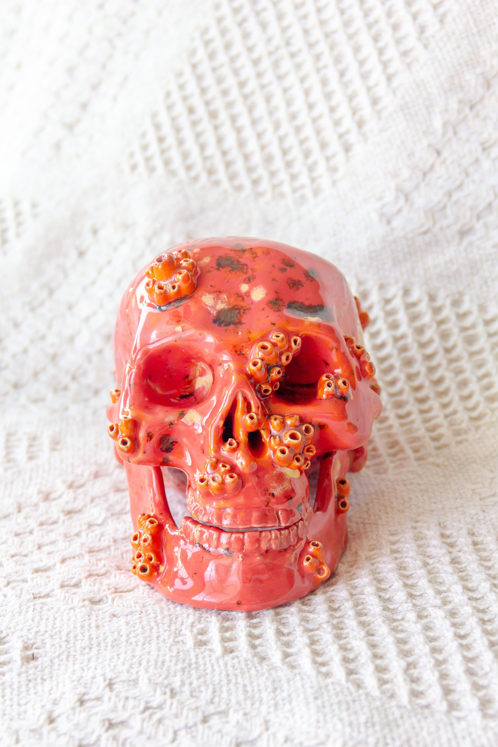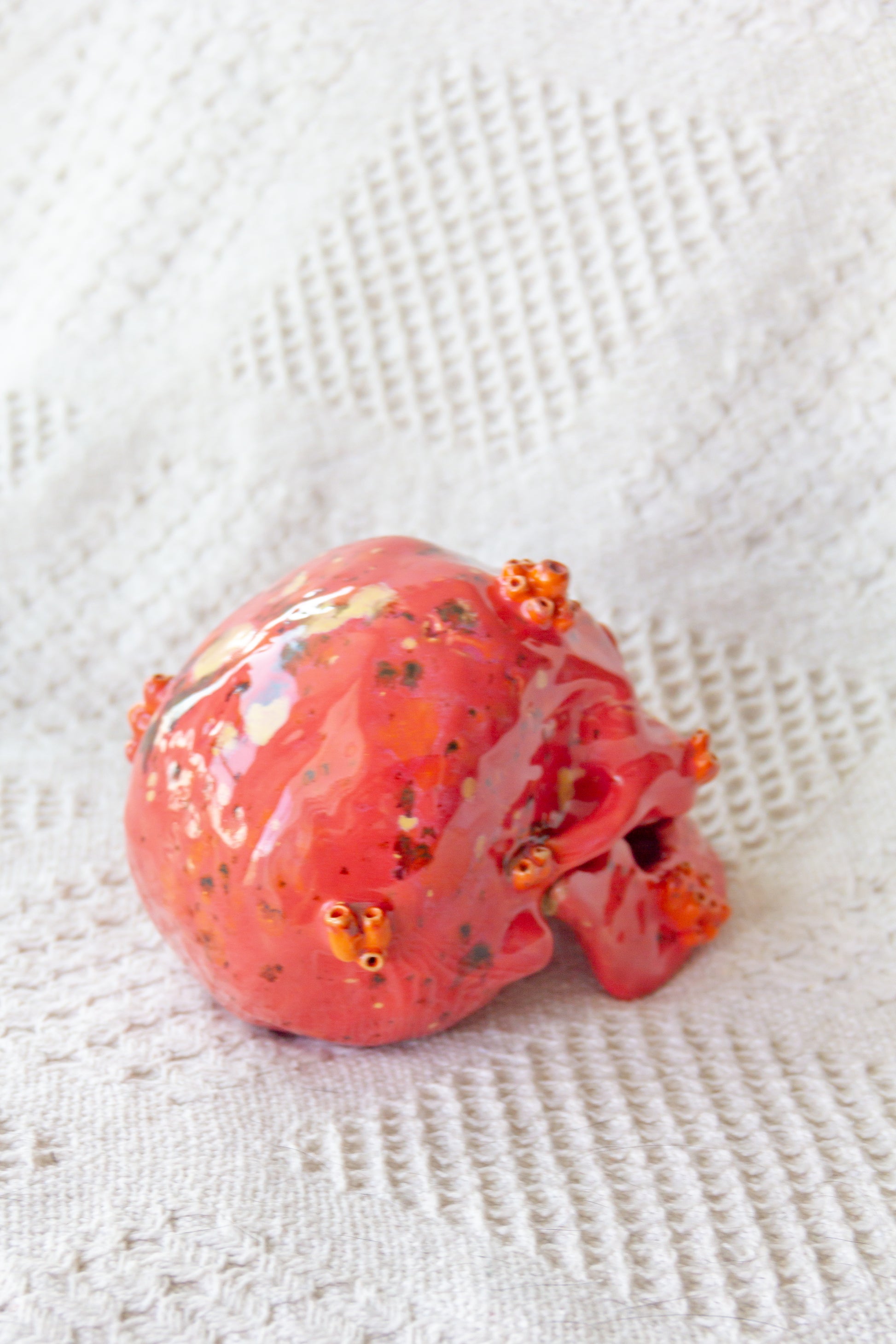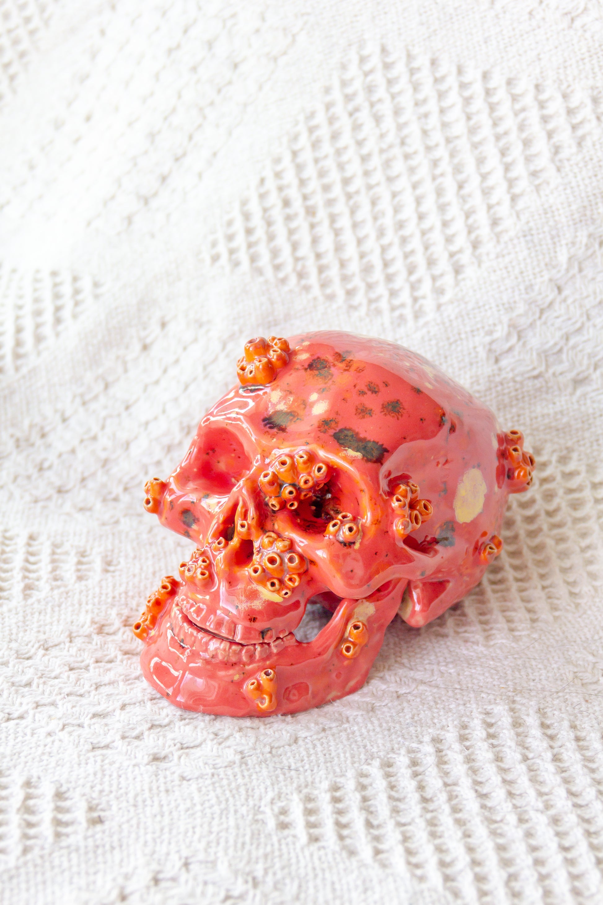 Czaszka ceramiczna malinowo-pomarańczowa z ruchomą żuchwą