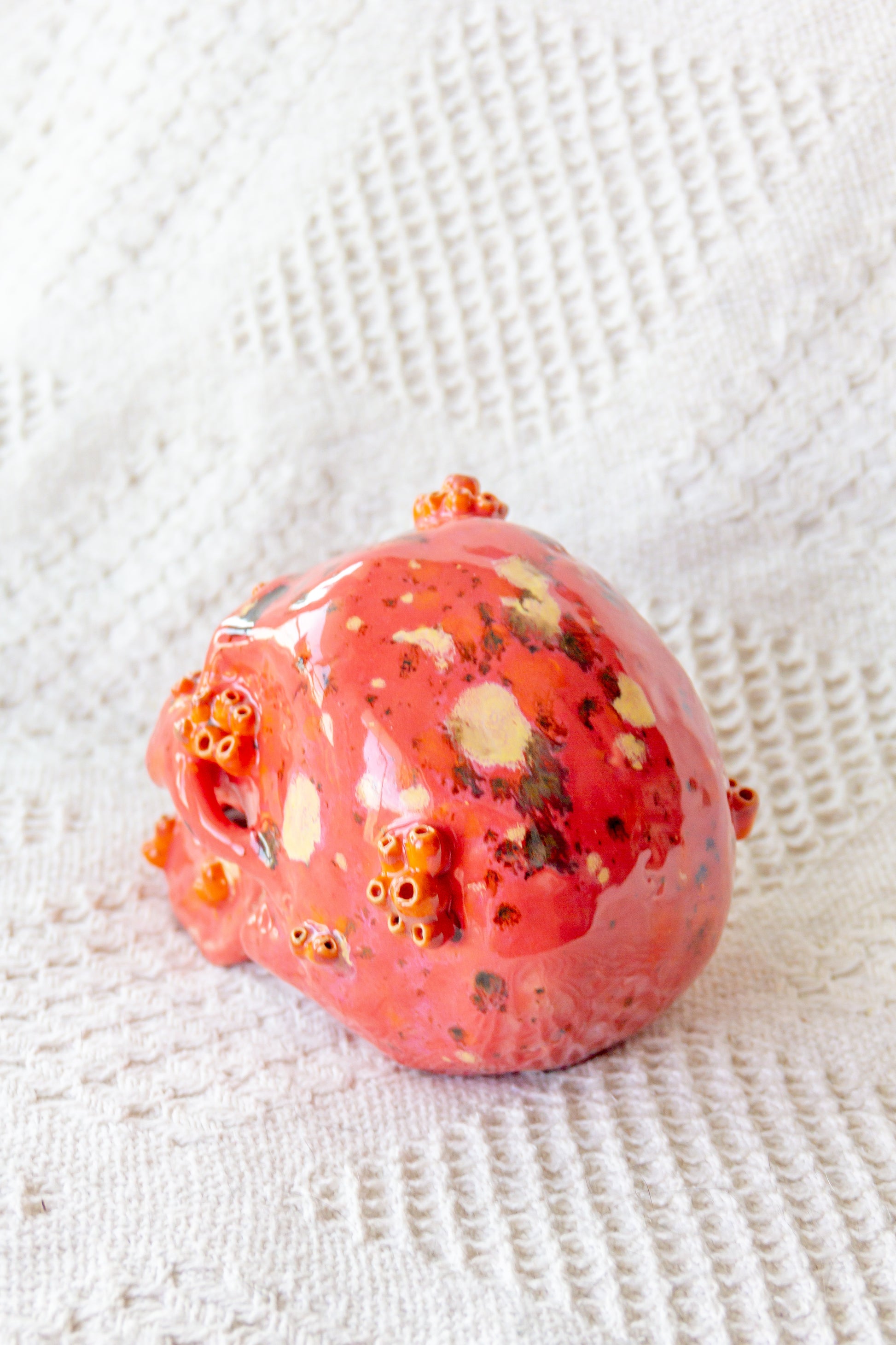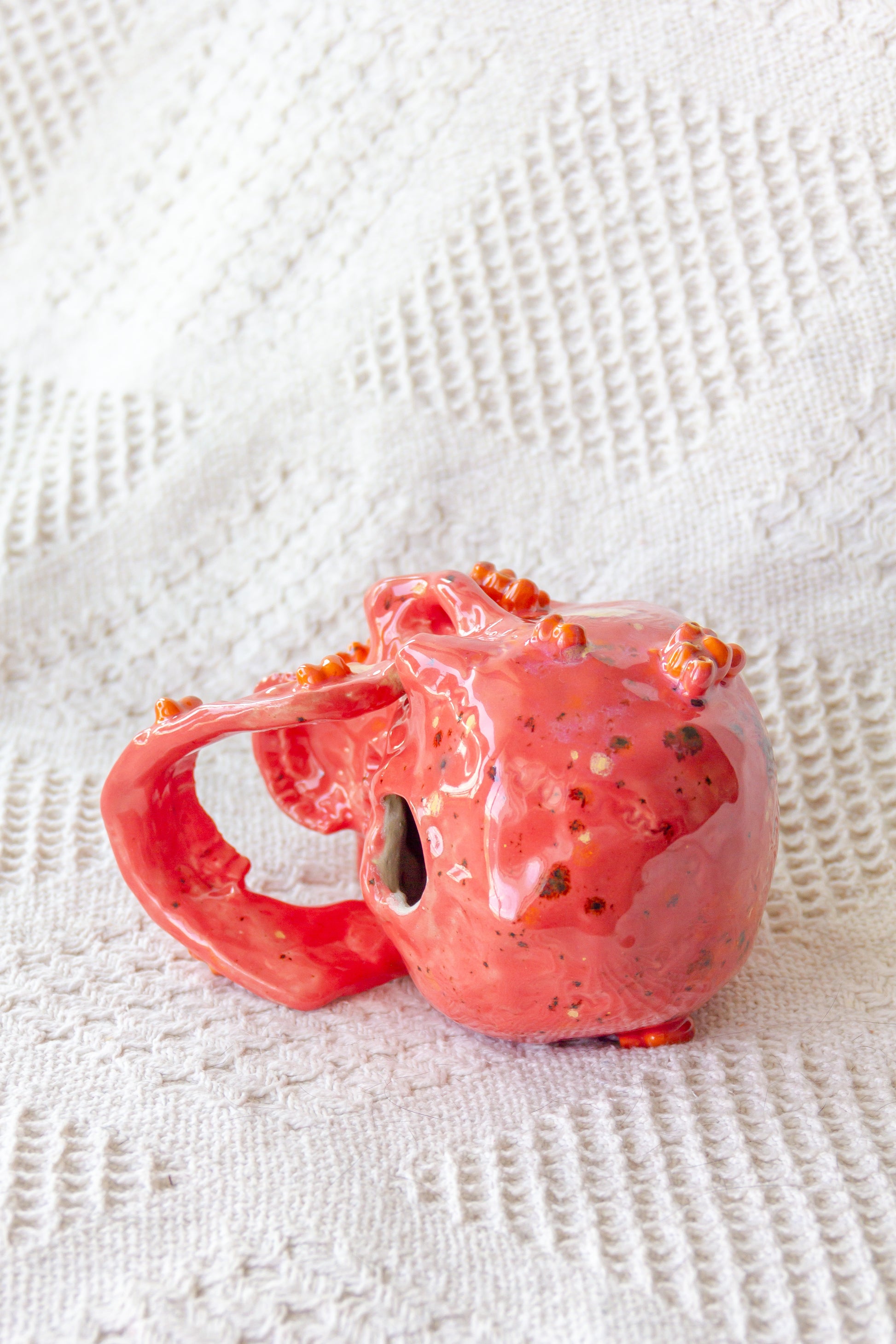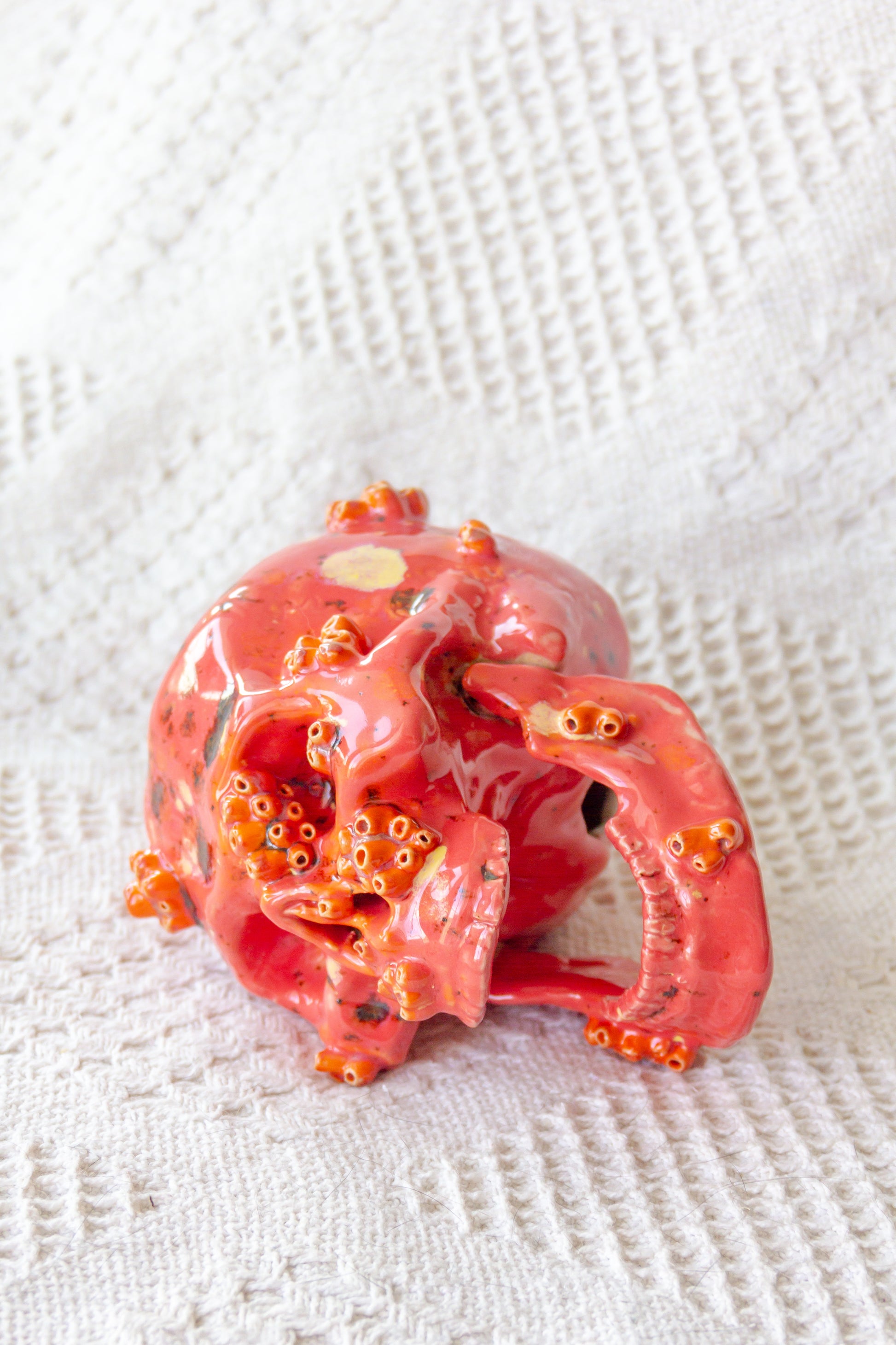 Czaszka ceramiczna malinowo-pomarańczowa z ruchomą żuchwą