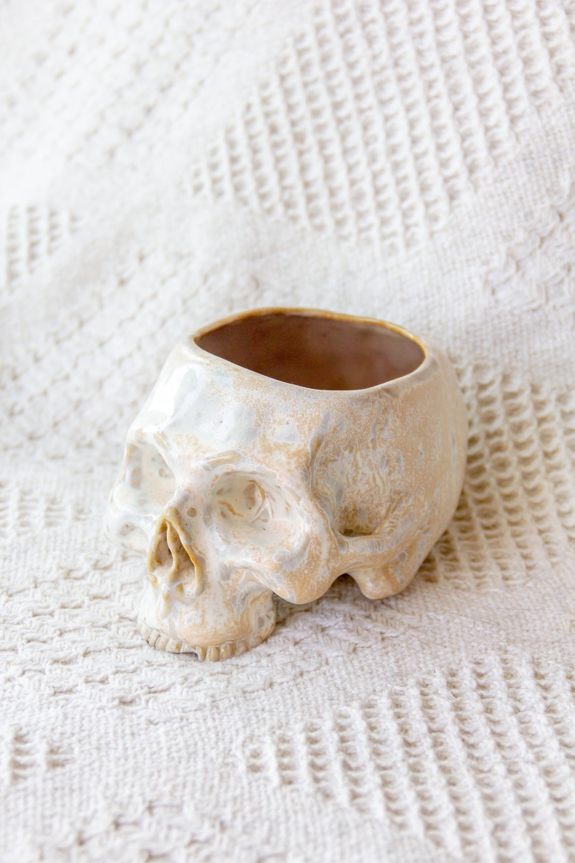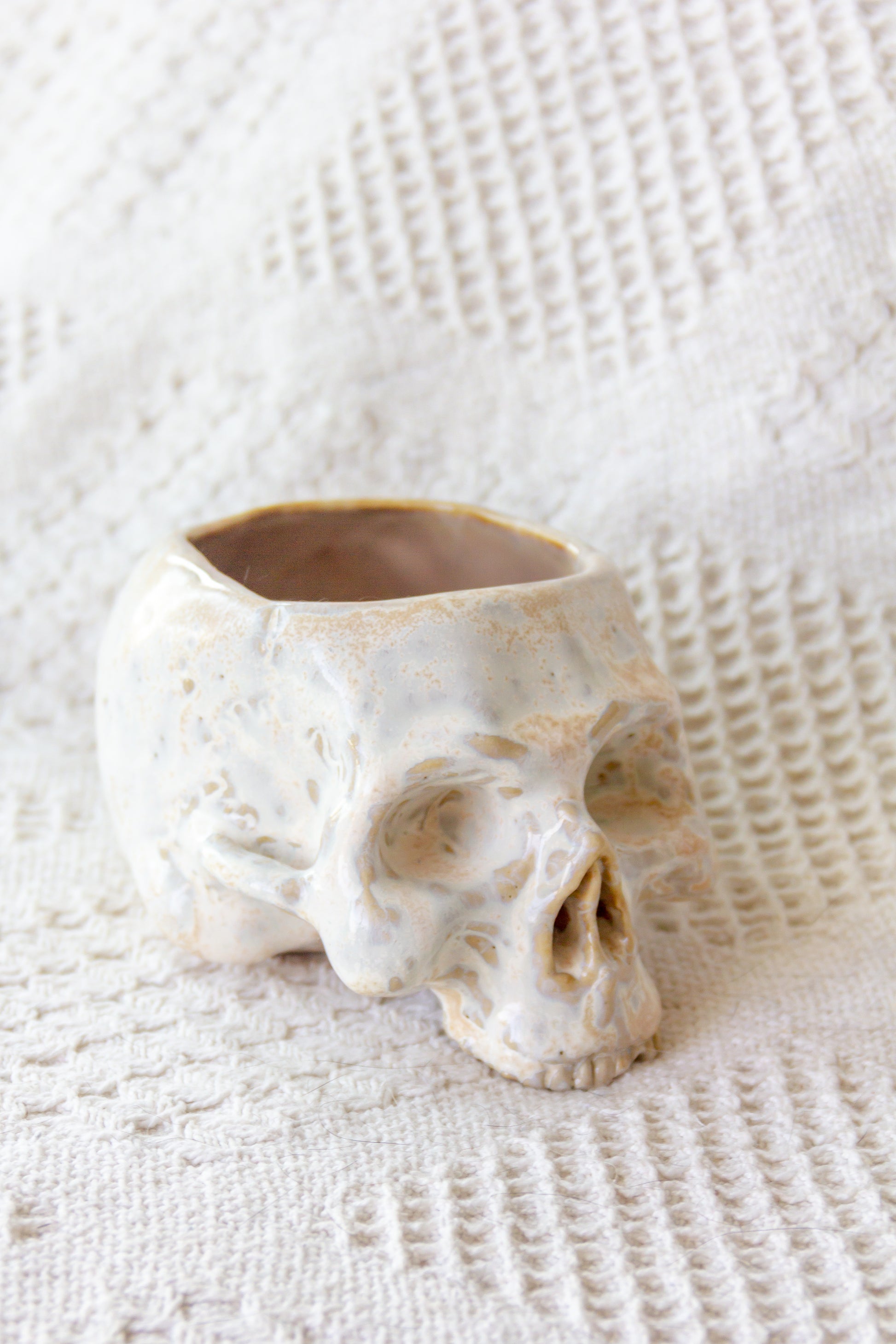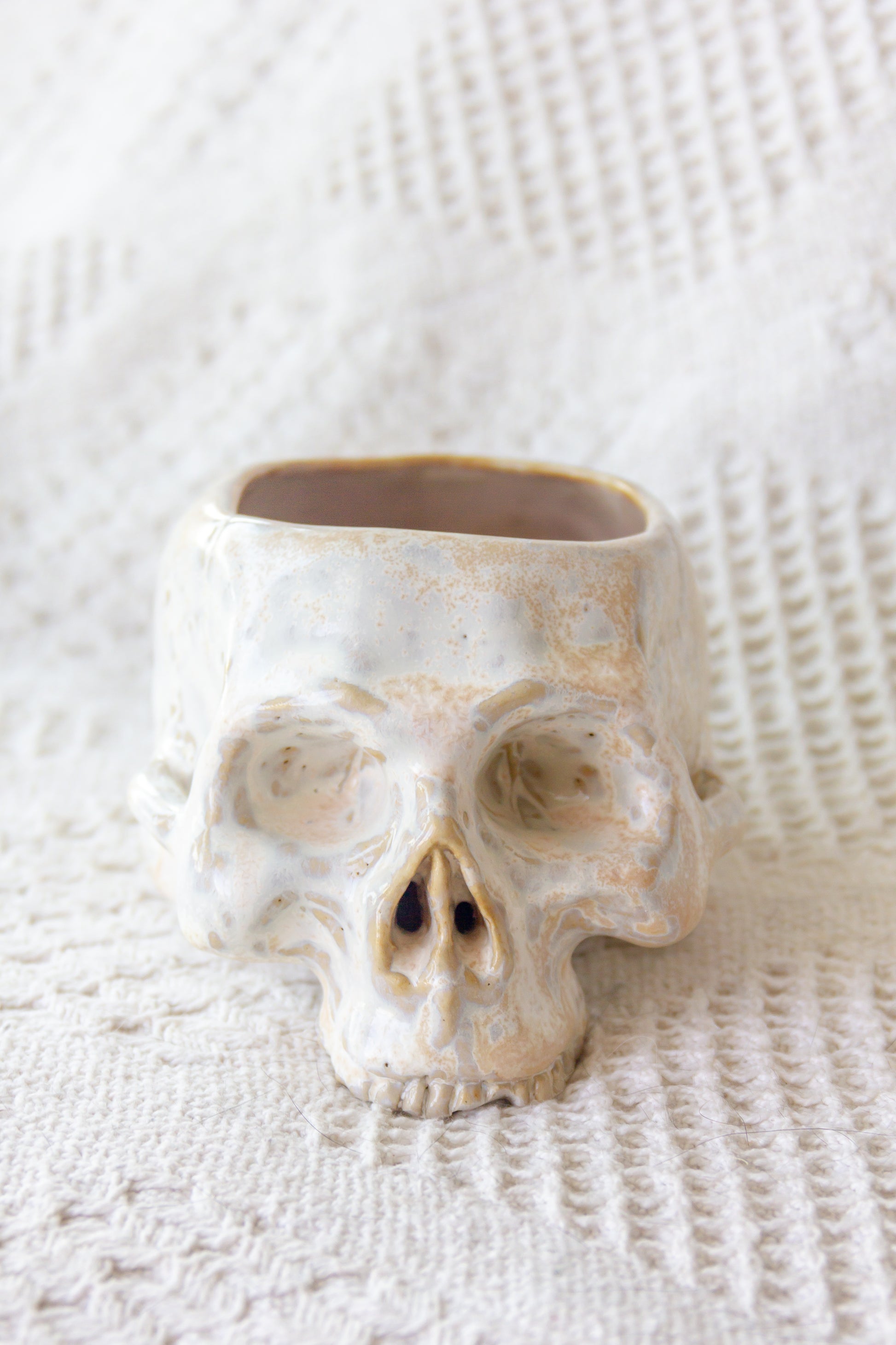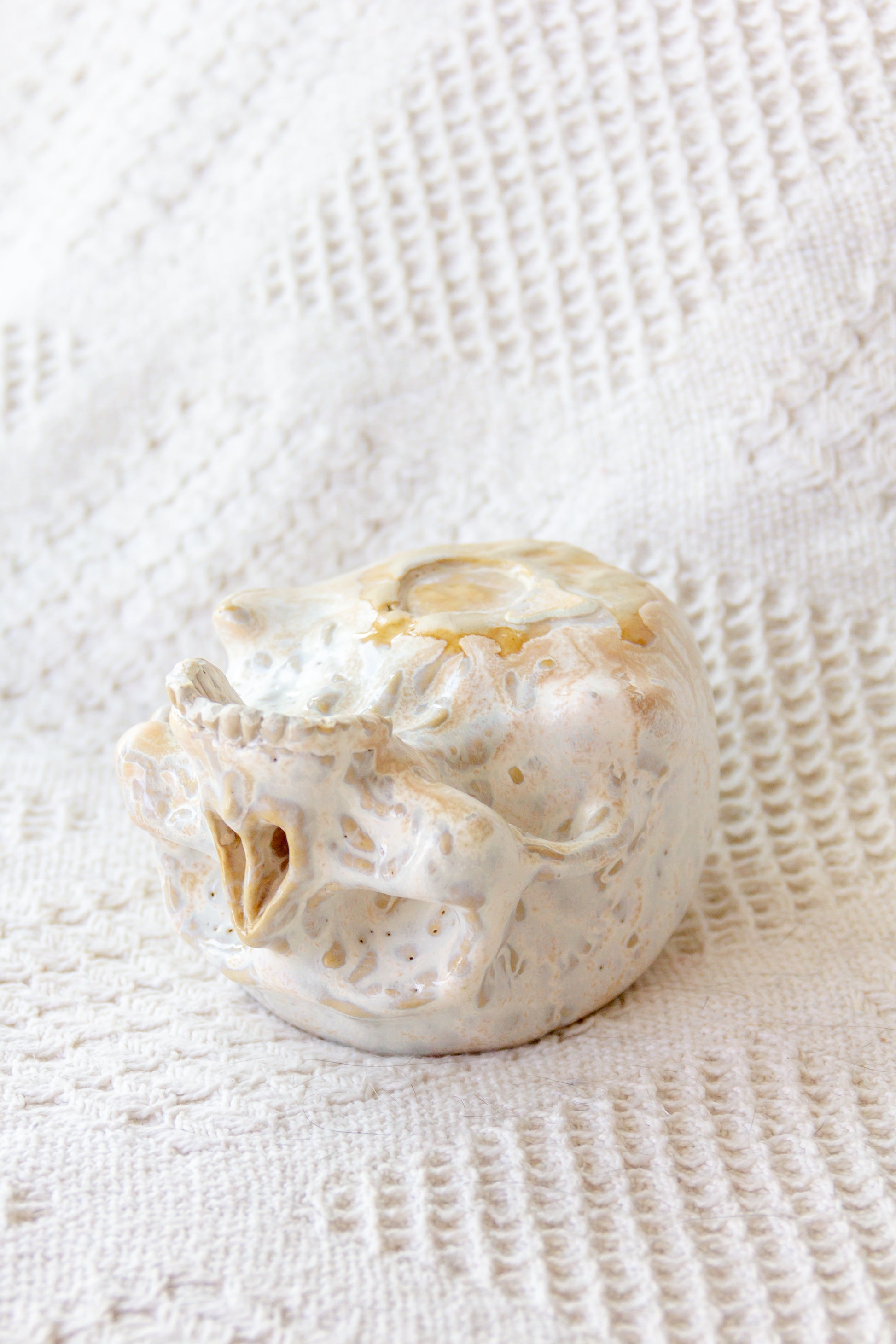 Czaszka-szkatułka ceramiczna beżowo-biała