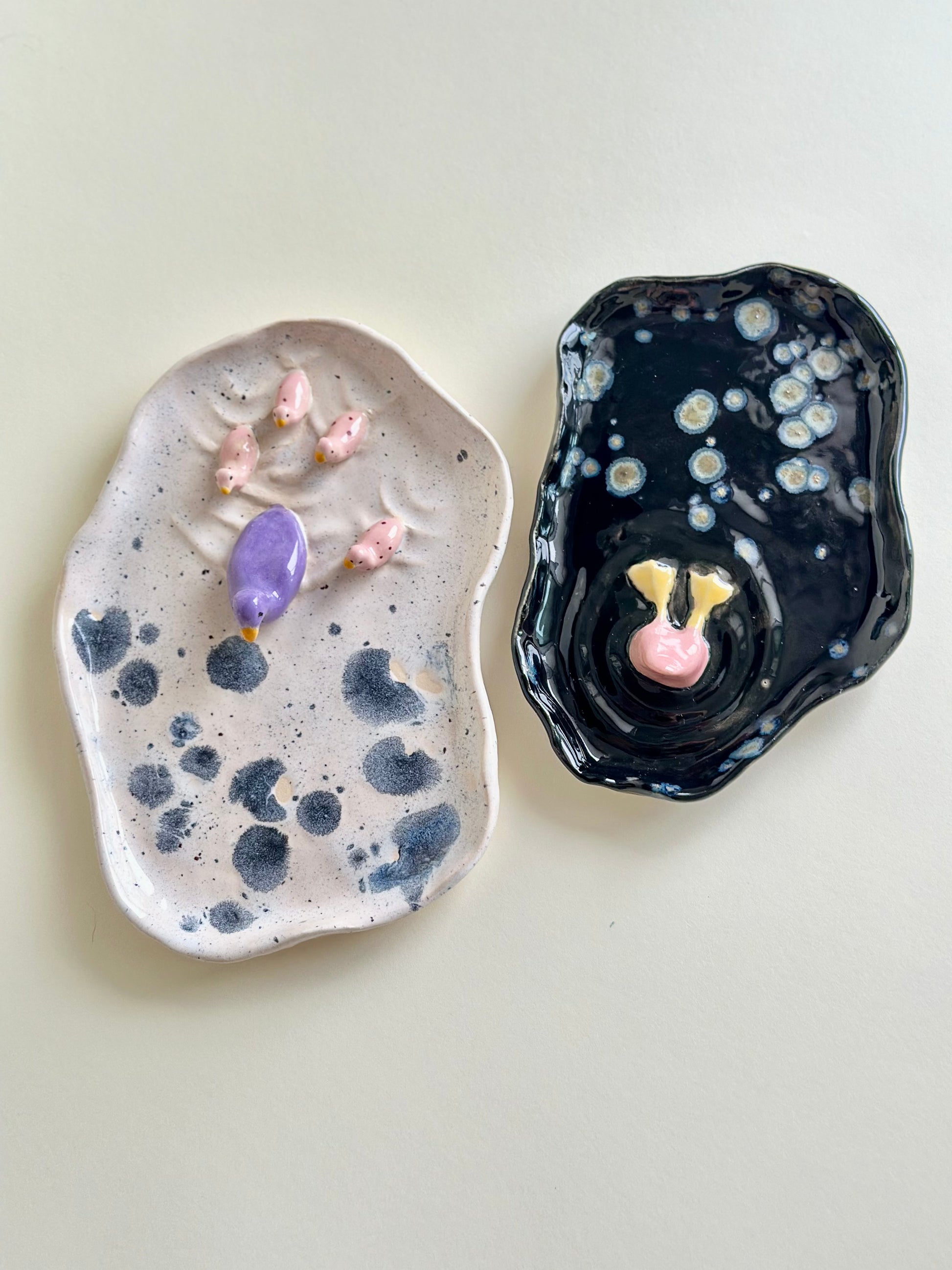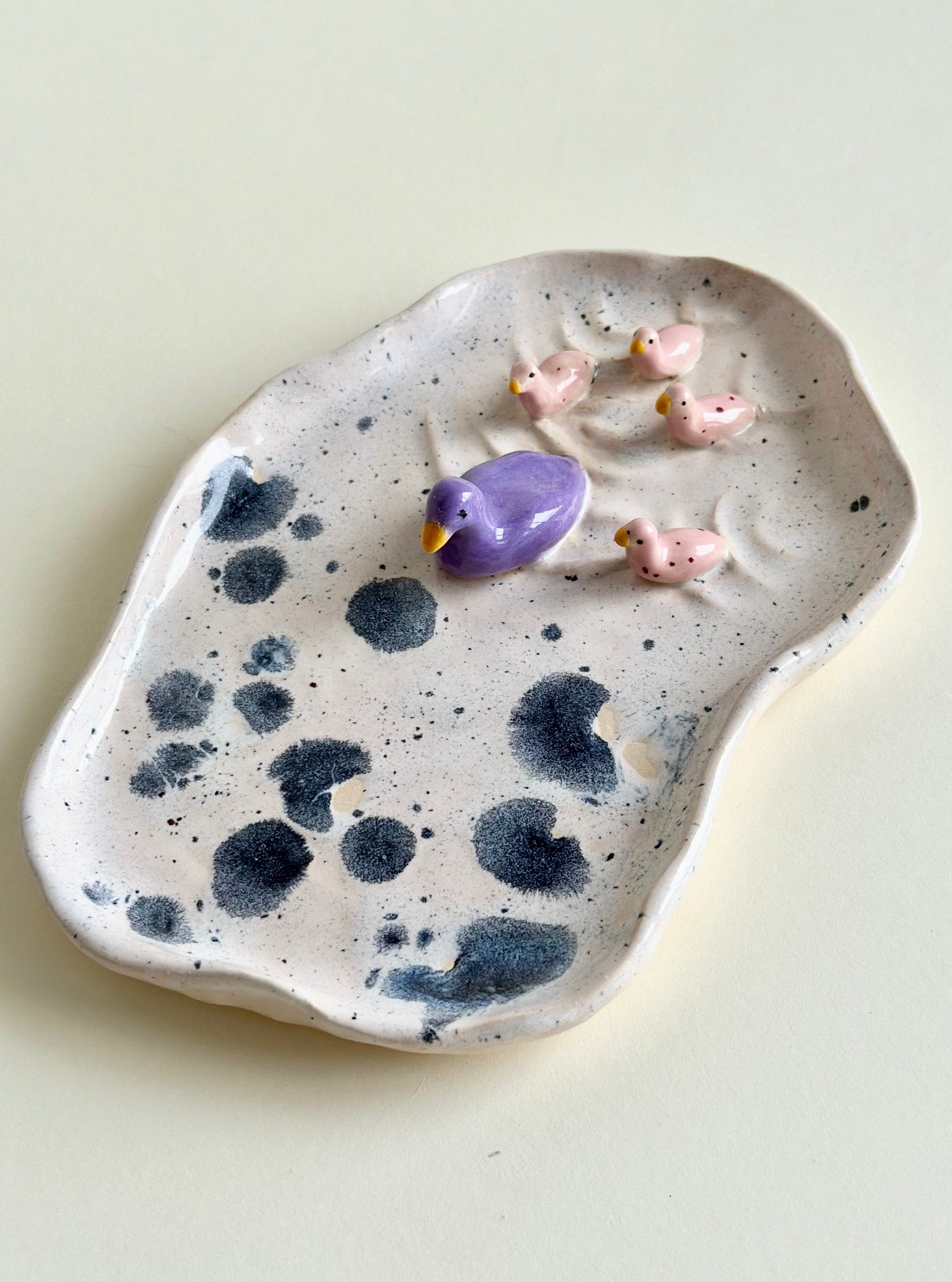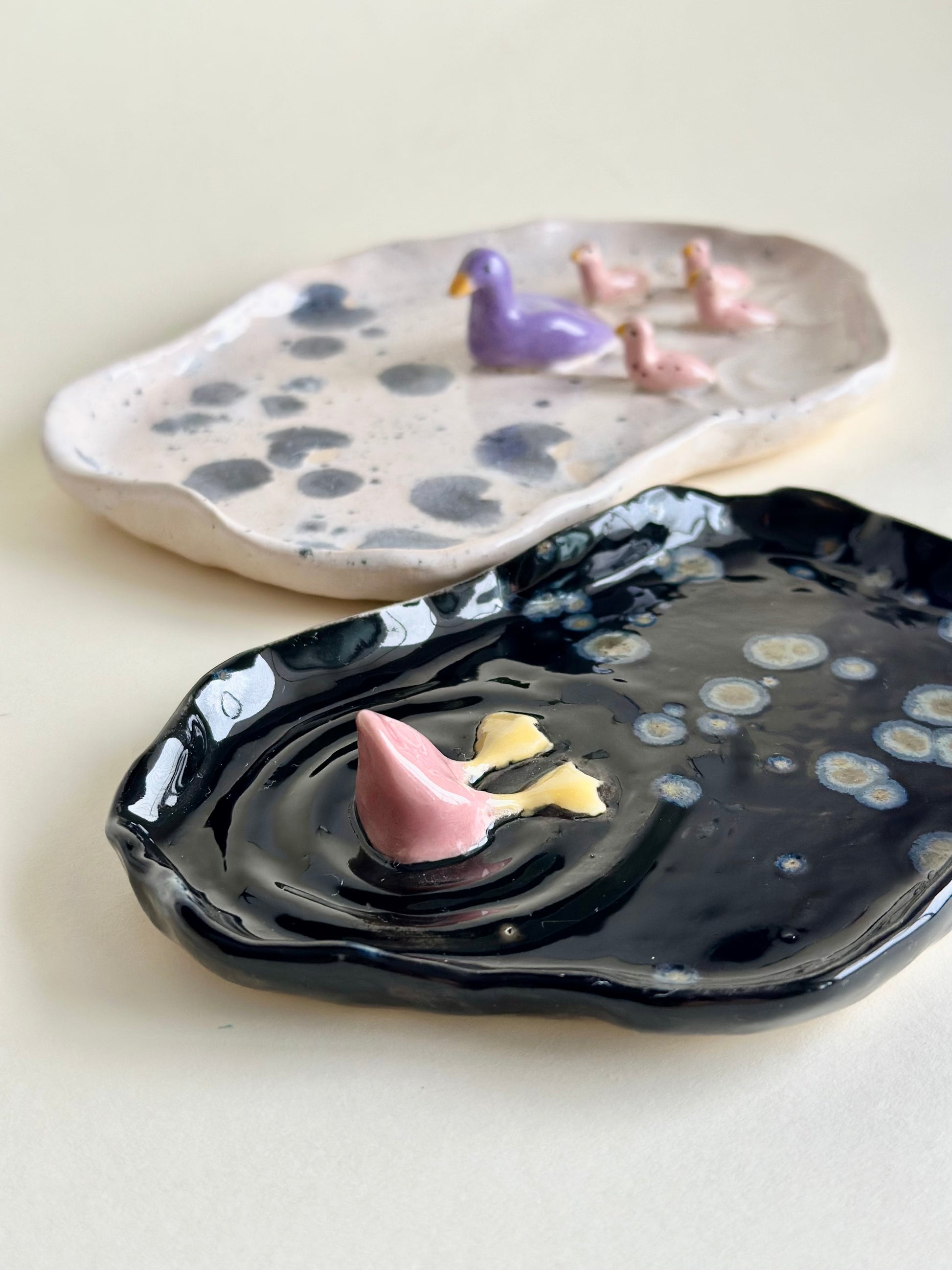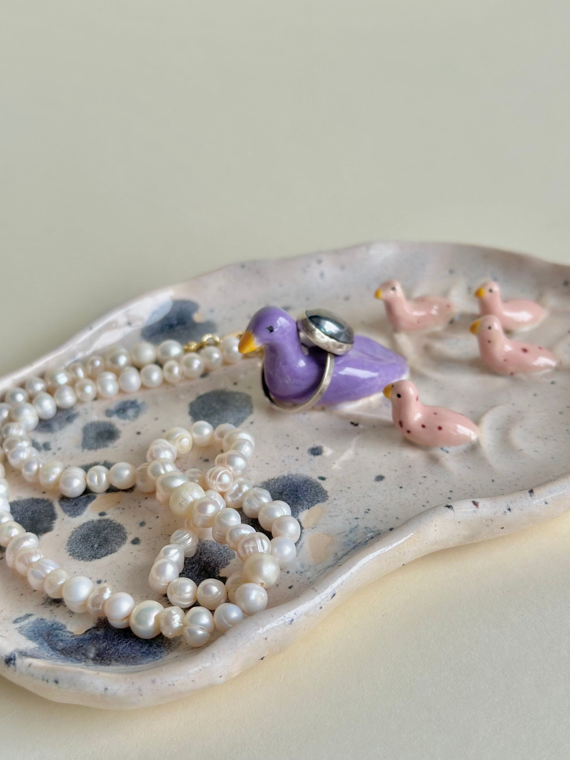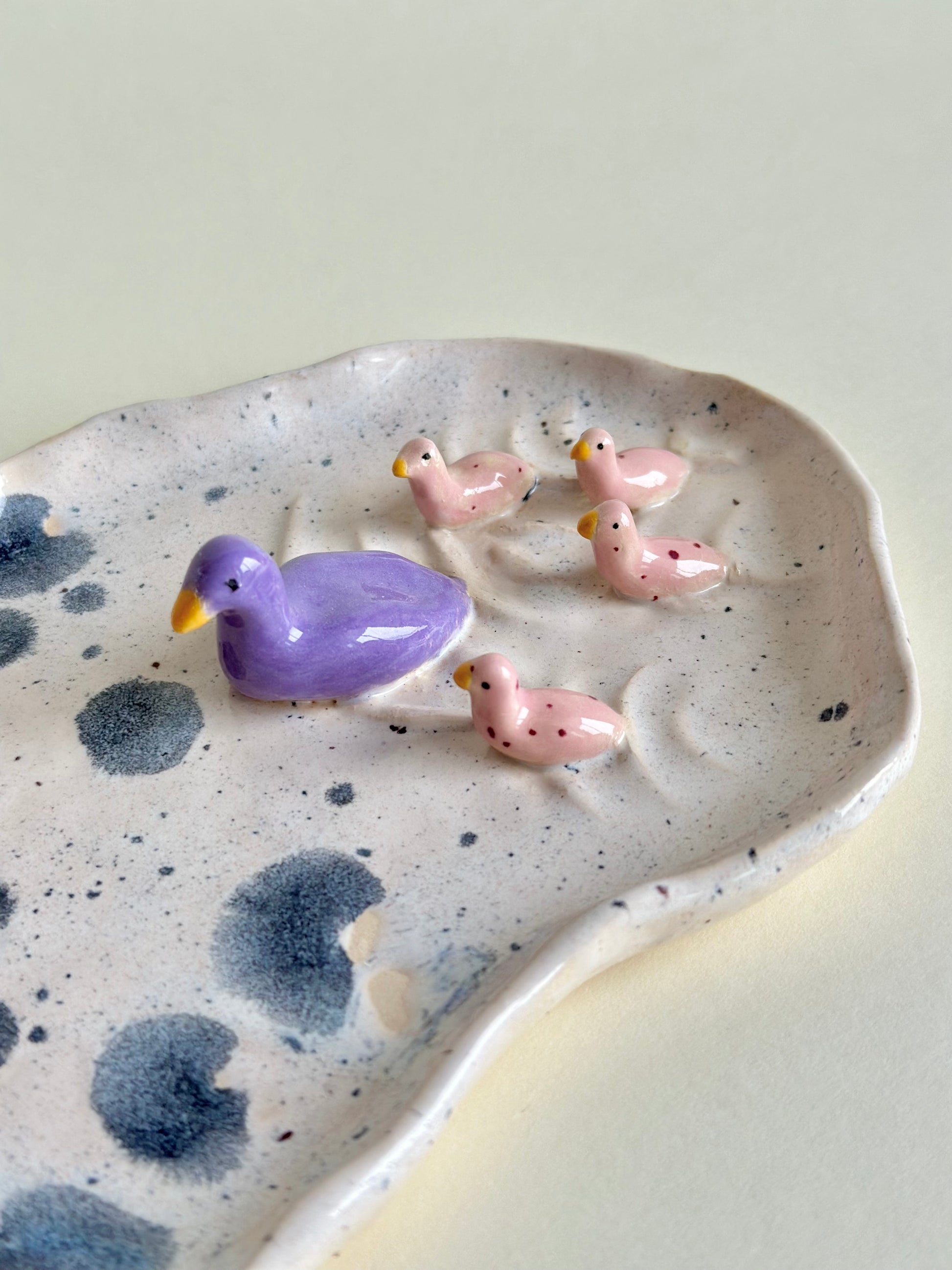 Unikalna ręcznie robiona podstawka na biżuterię z motywem kaczki.