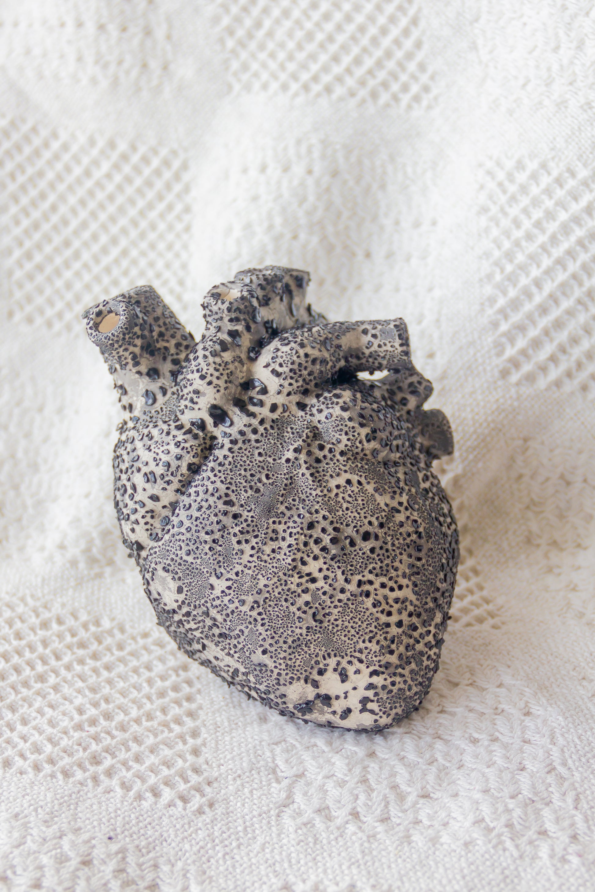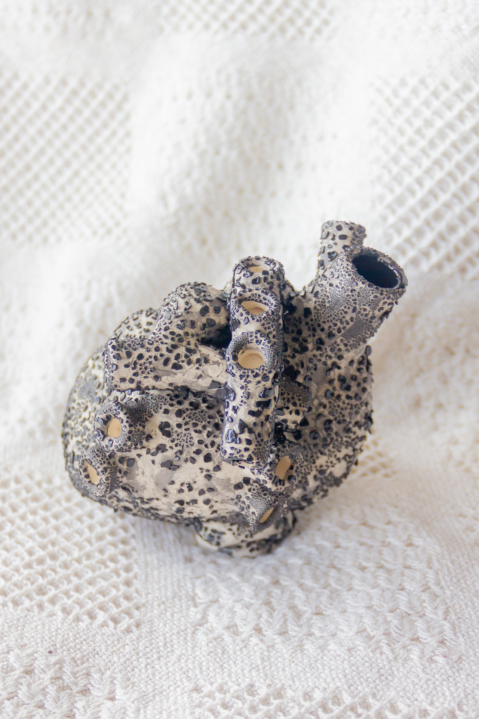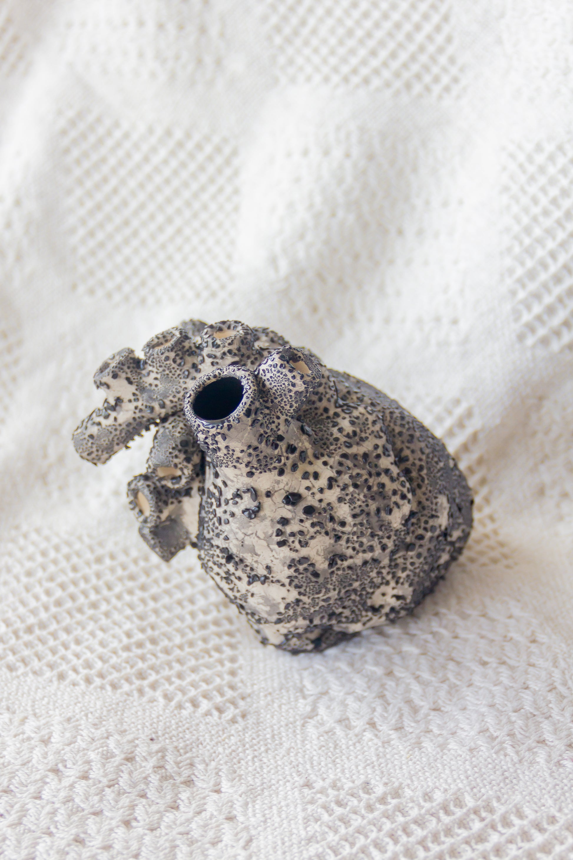 Serce ceramiczne dekoracyjne. Jest szkliwione w środku i ma otwór lub kilka otworów w „żyłach”, dlatego może być również wykorzystywane jako wazon.