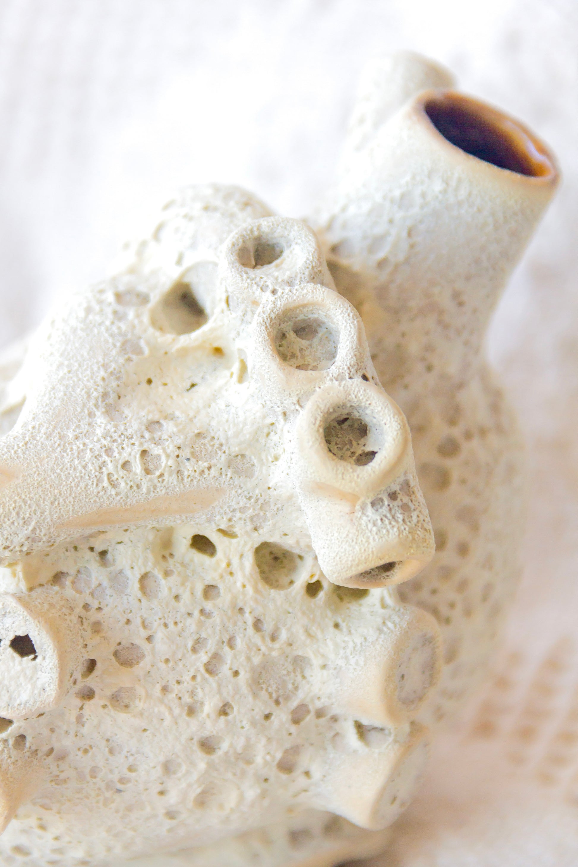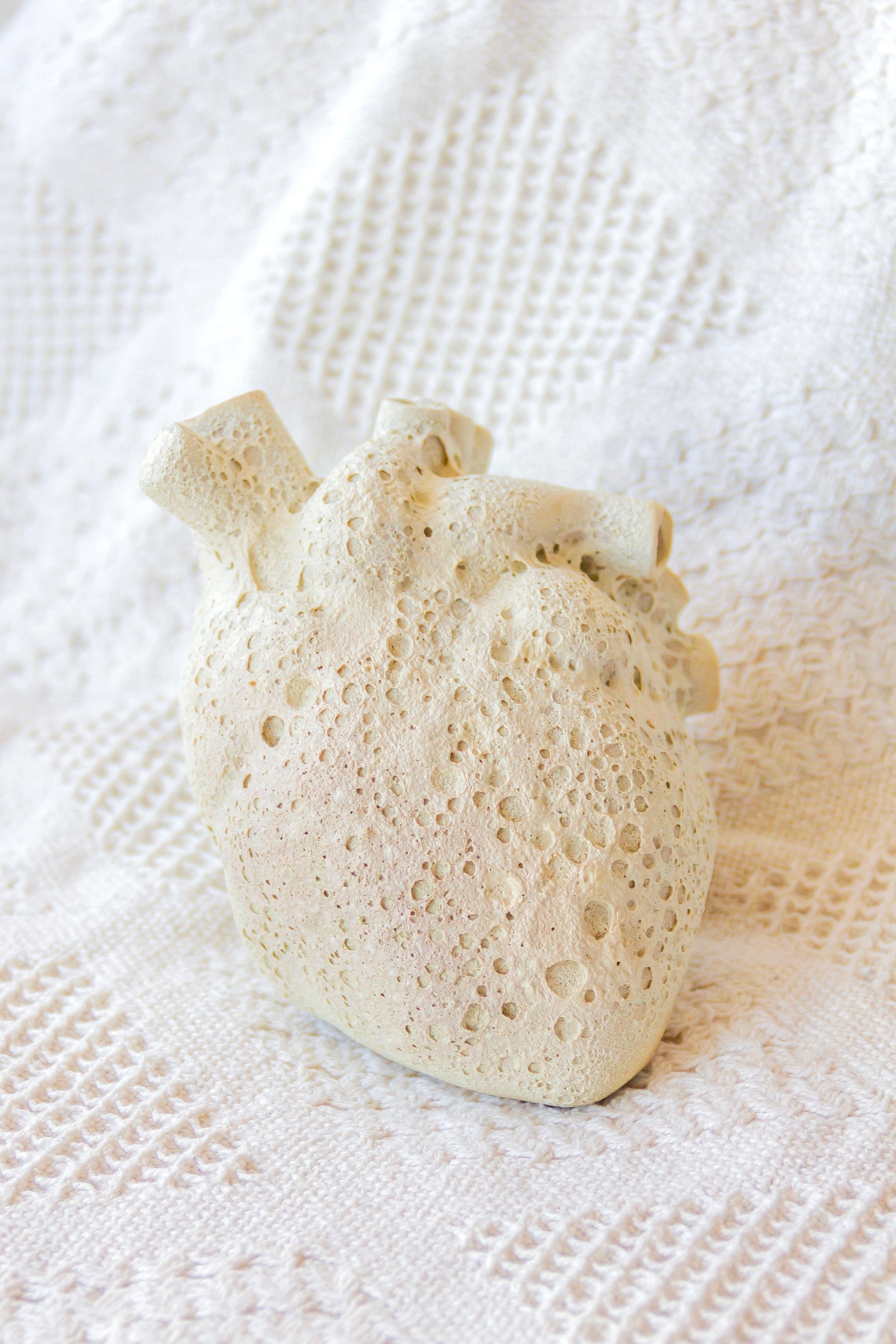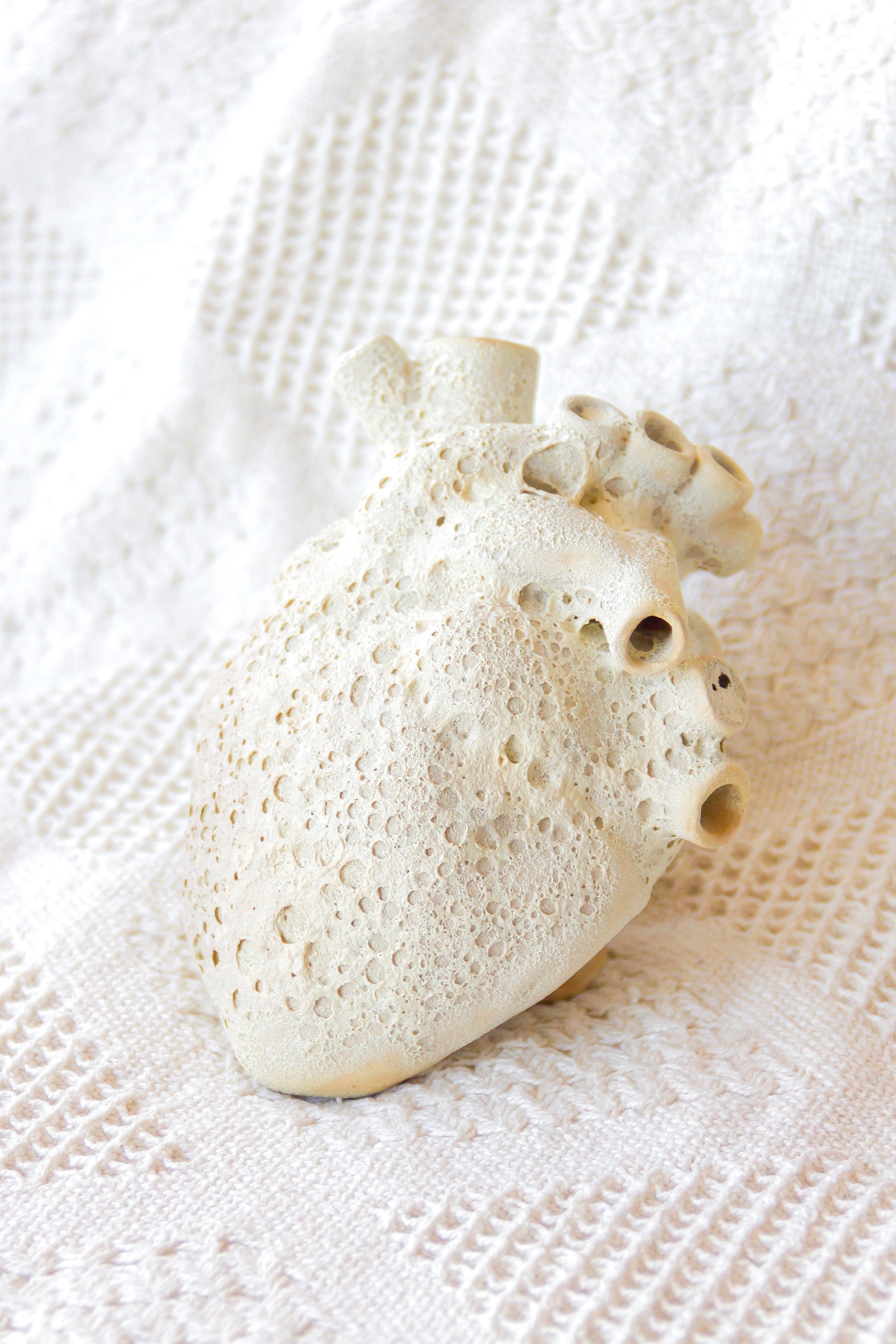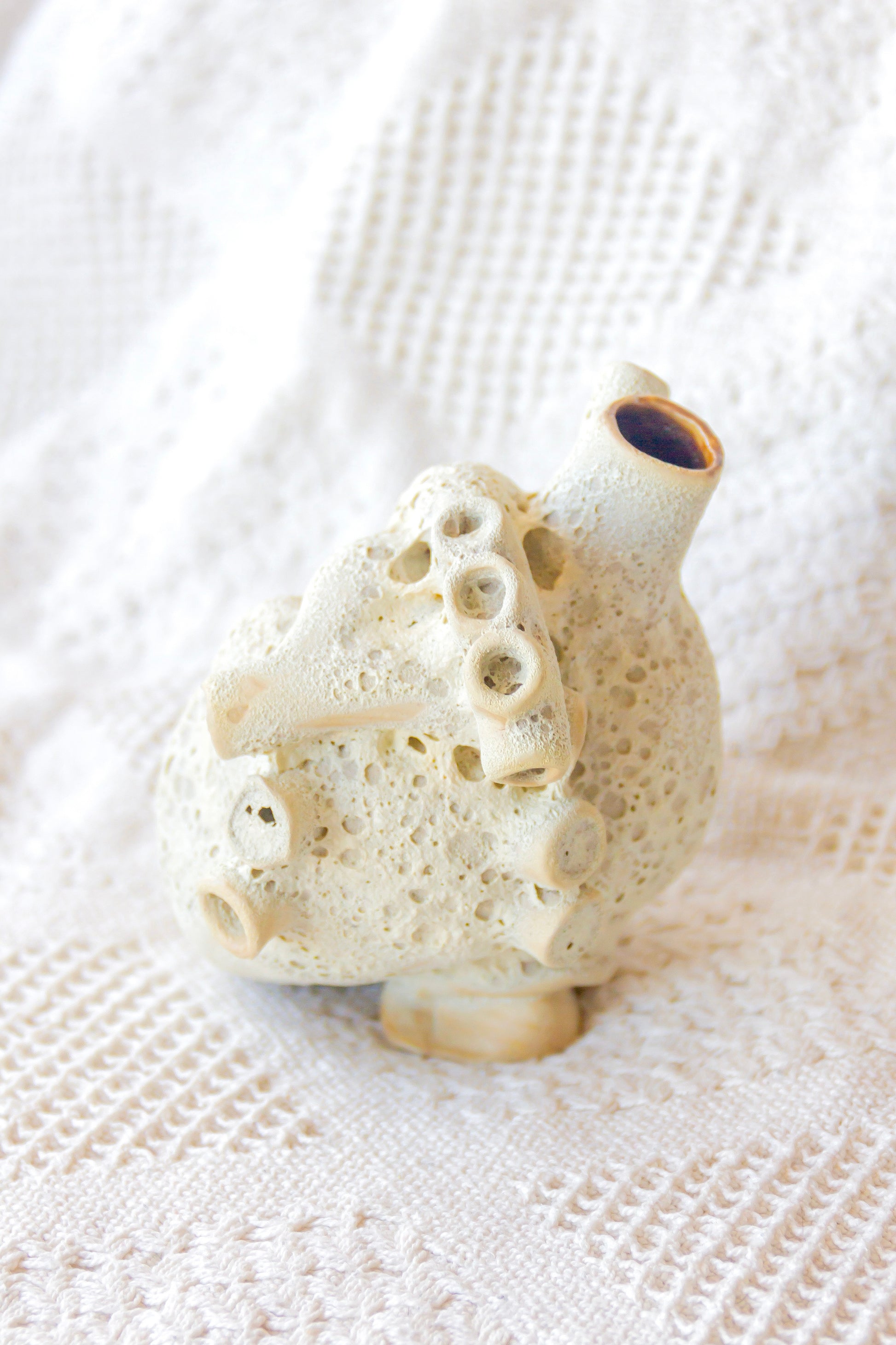 Serce ceramiczne dekoracyjne. Jest szkliwione w środku i ma otwór lub kilka otworów w „żyłach”, dlatego może być również wykorzystywane jako wazon.