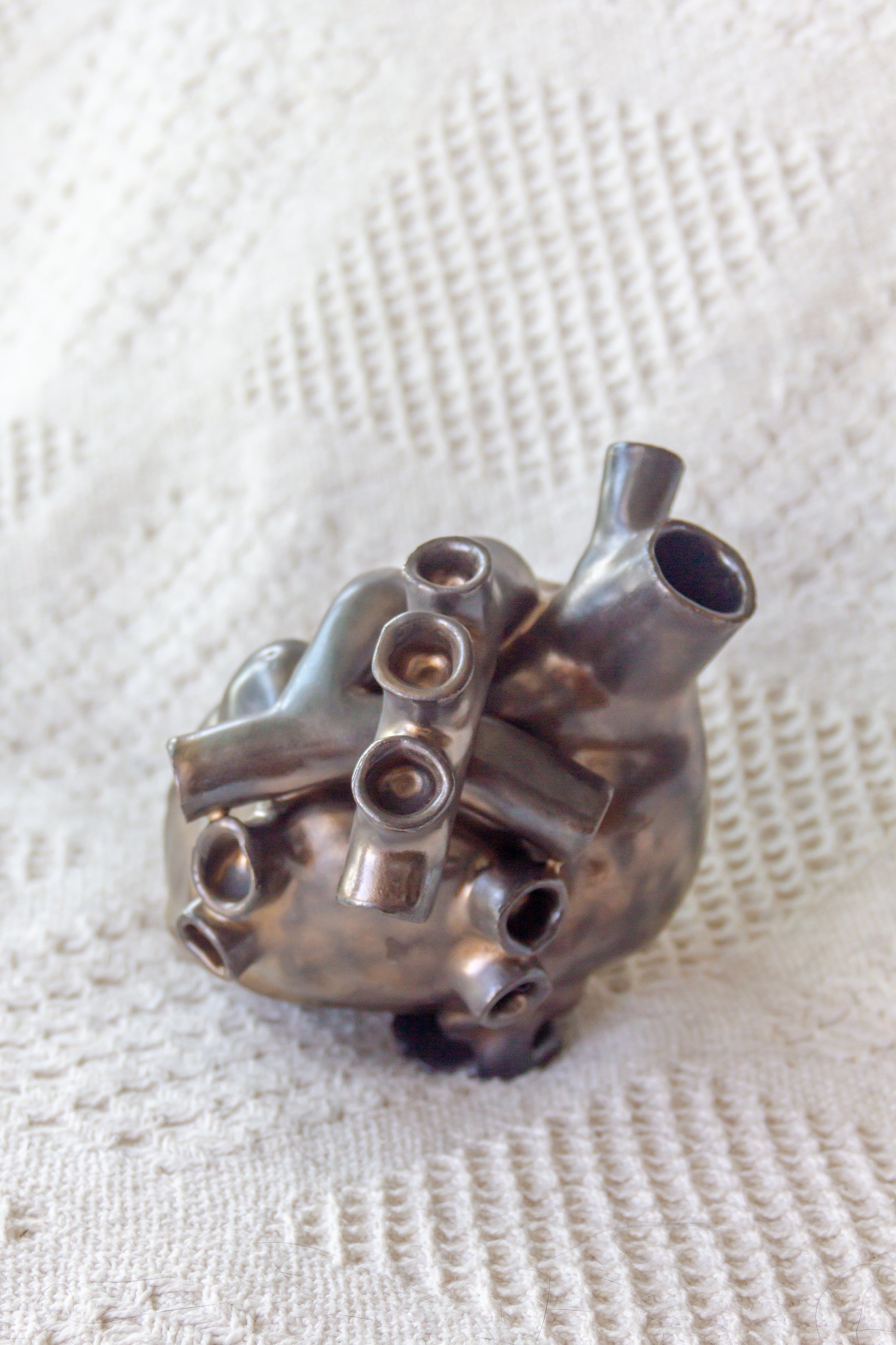 Serce ceramiczne dekoracyjne. Jest szkliwione w środku i ma otwór lub kilka otworów w „żyłach”, dlatego może być również wykorzystywane jako wazon.