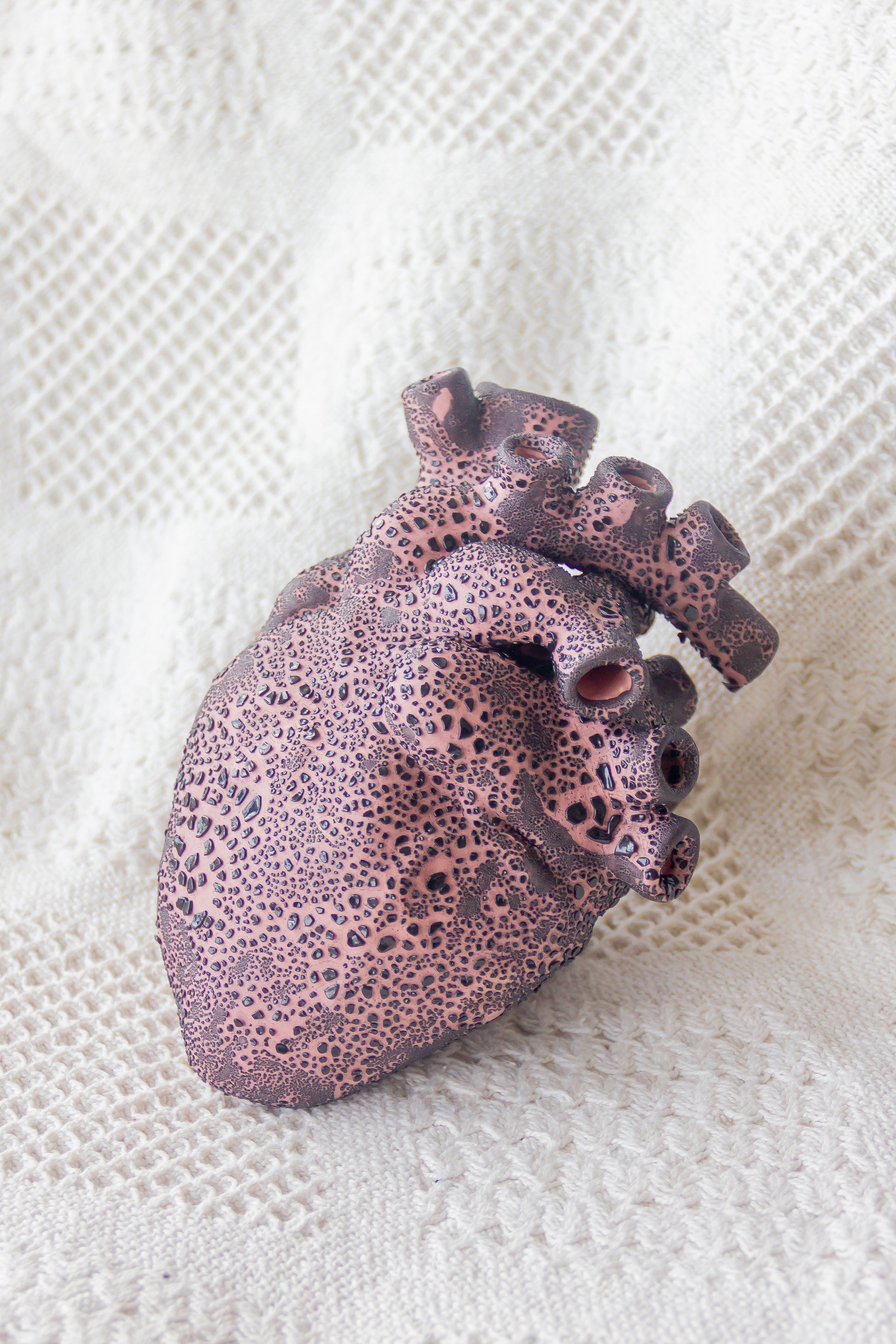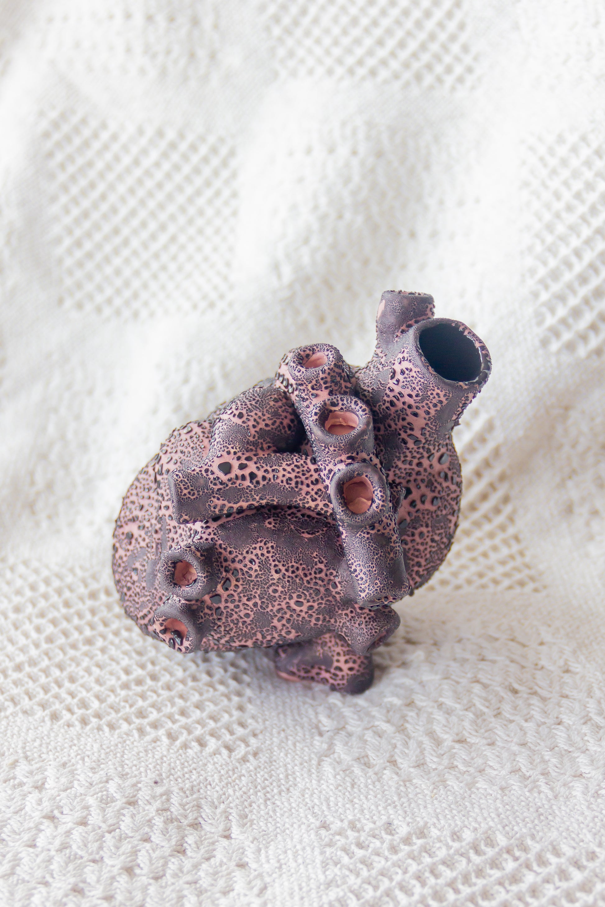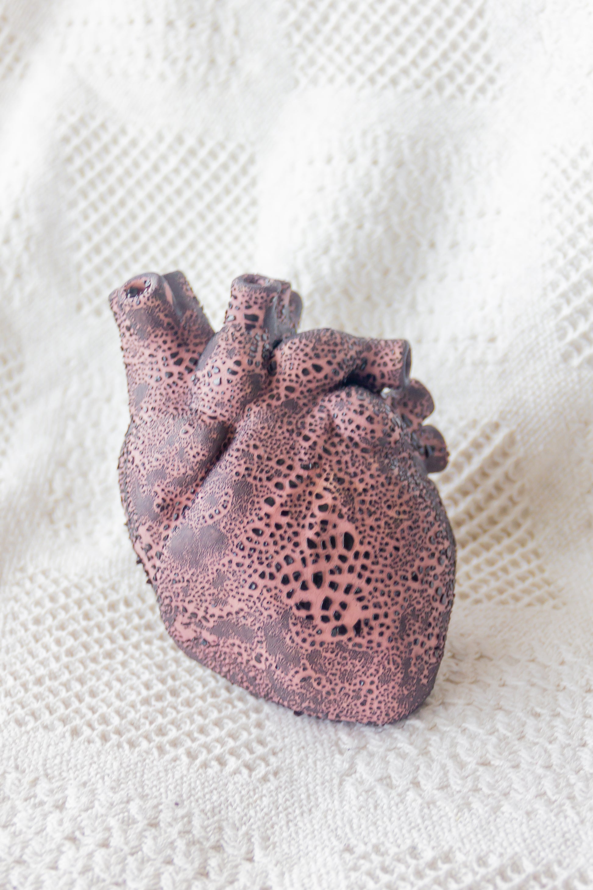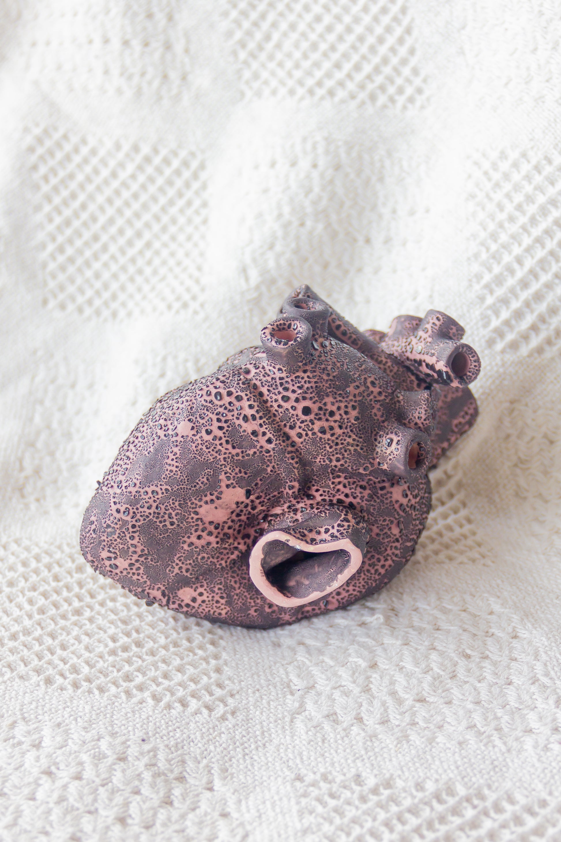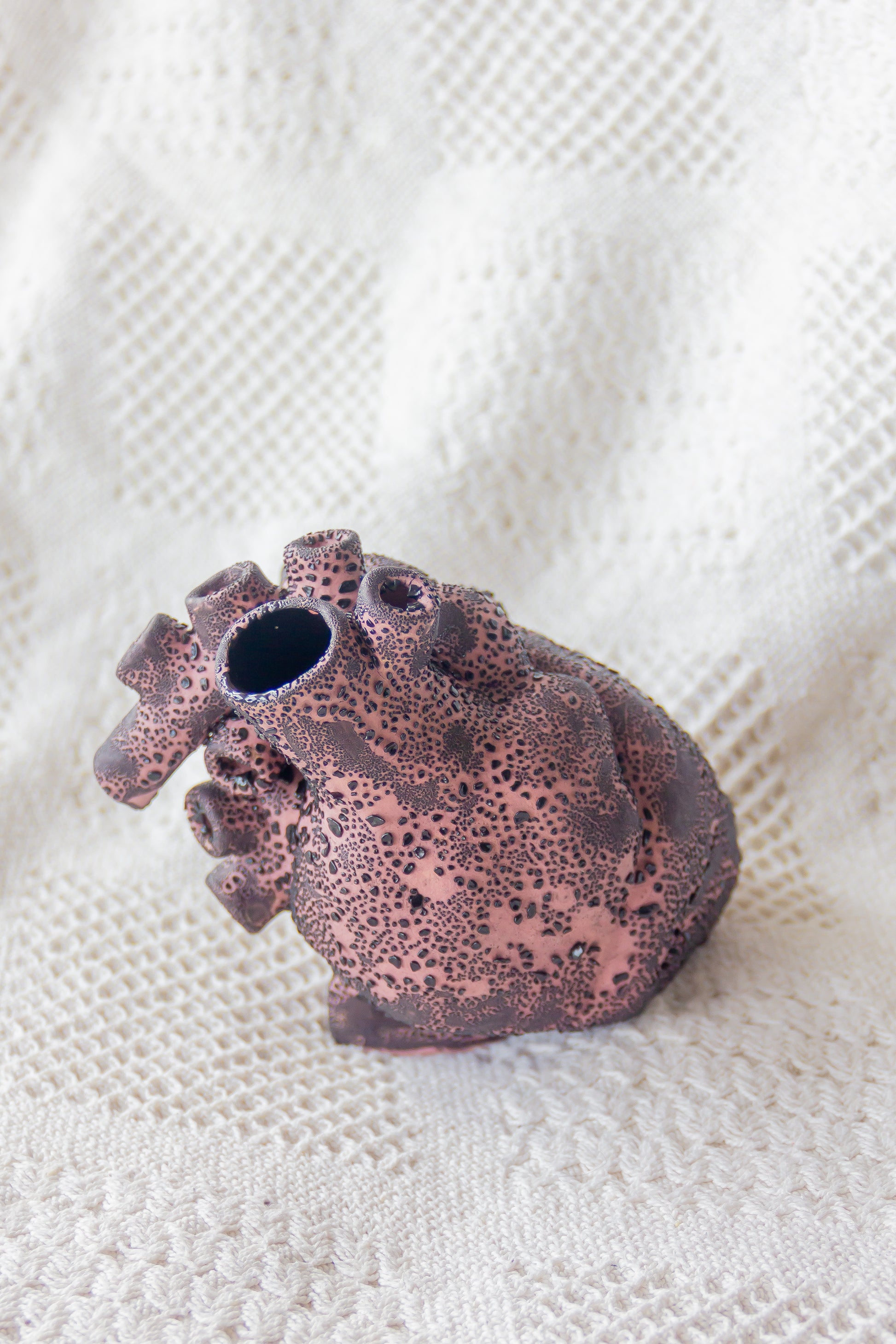 Serce ceramiczne dekoracyjne. Jest szkliwione w środku i ma otwór lub kilka otworów w „żyłach”, dlatego może być również wykorzystywane jako wazon.