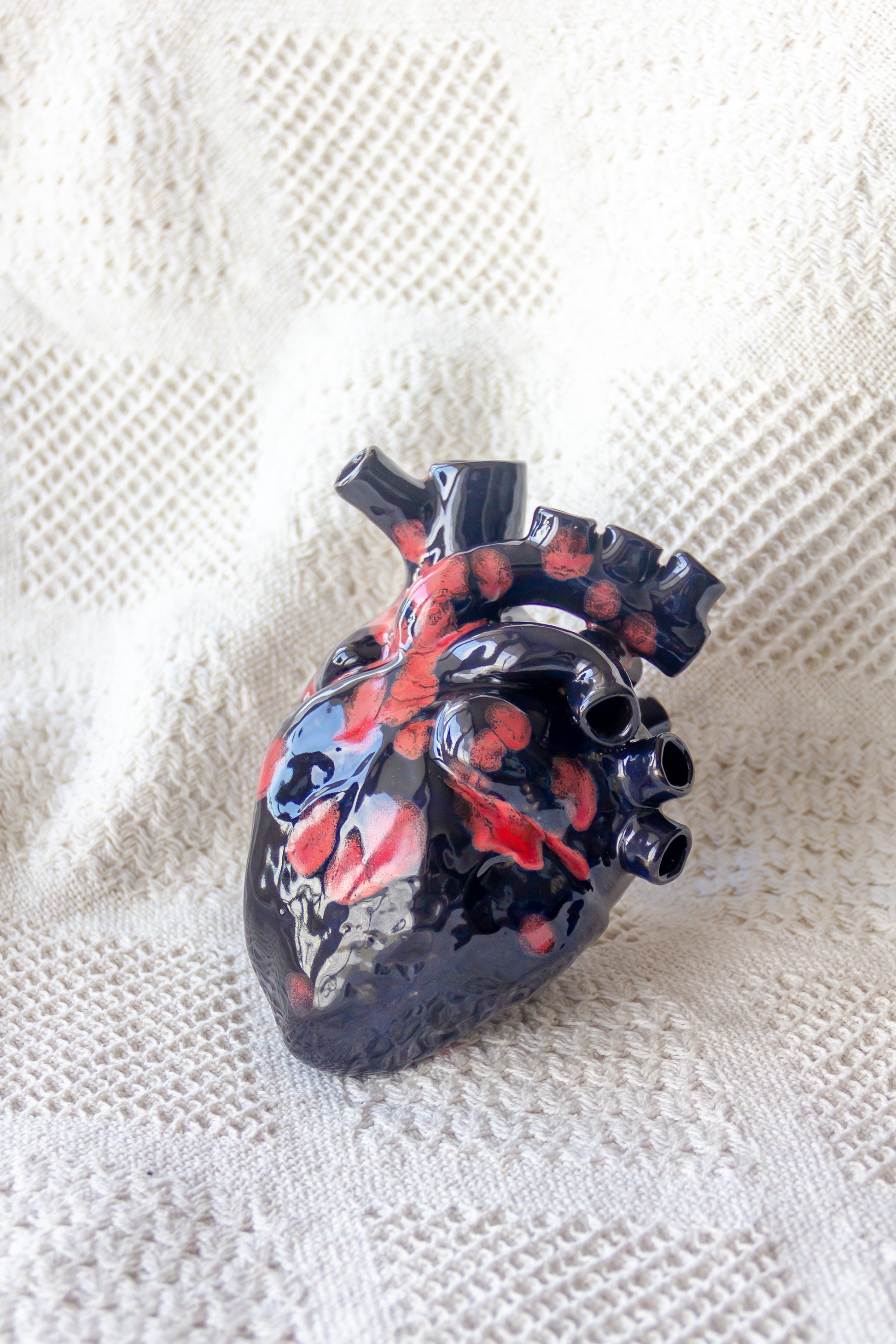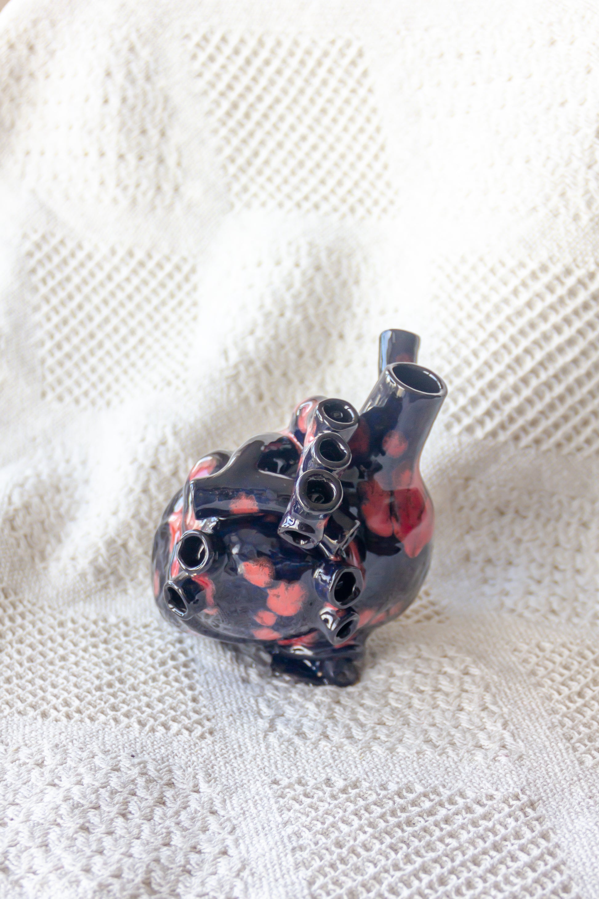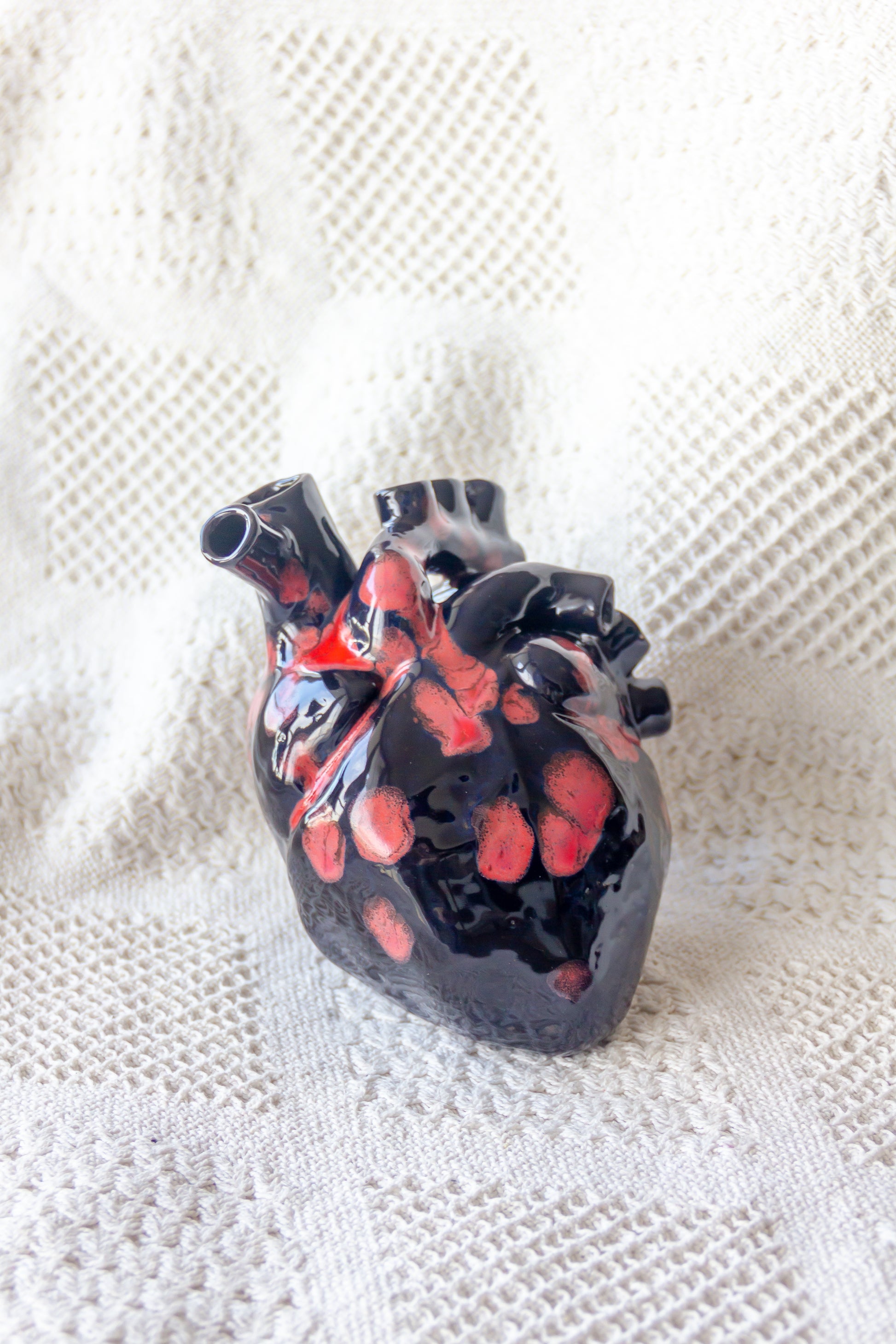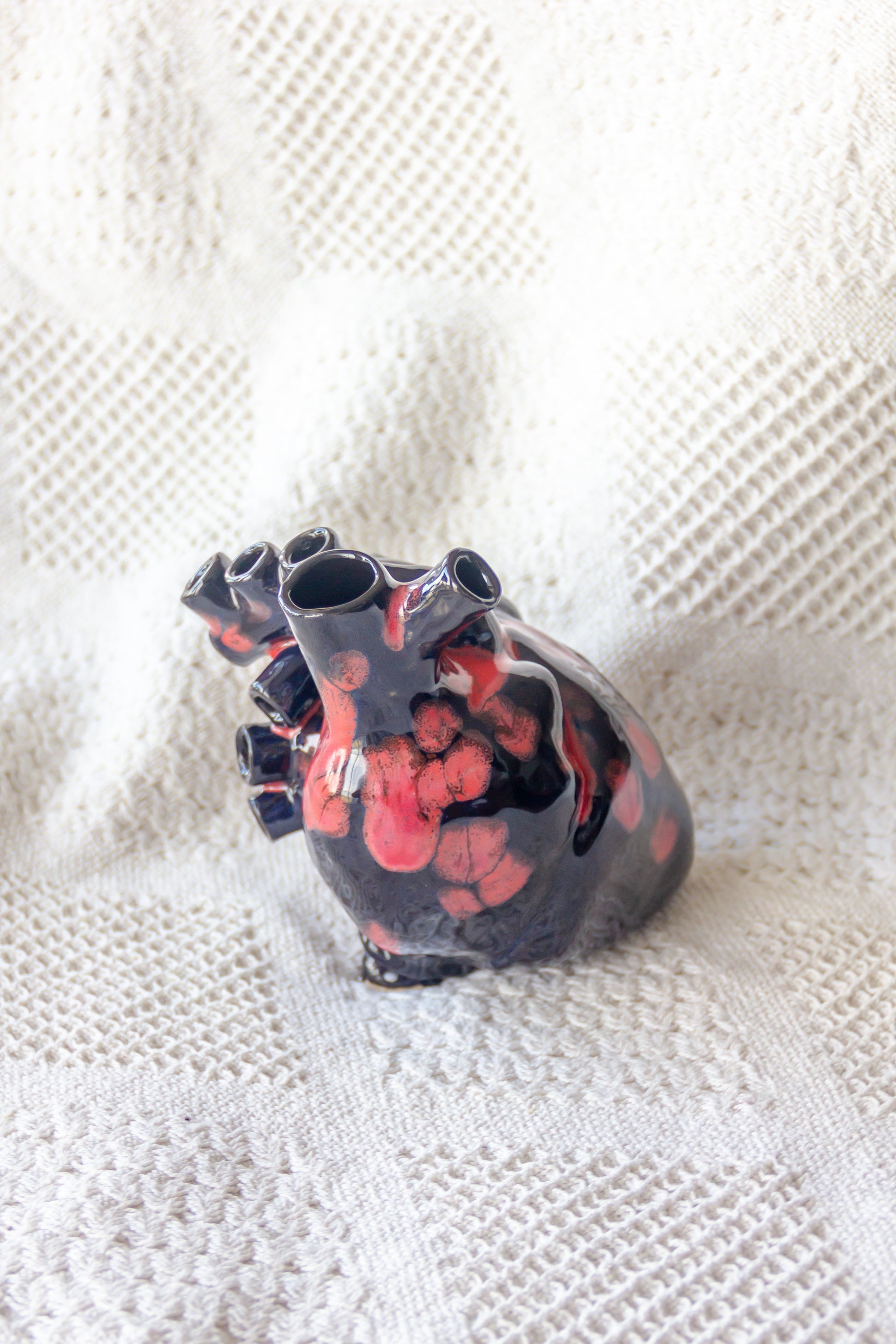 Serce ceramiczne dekoracyjne. Jest szkliwione w środku i ma otwór lub kilka otworów w „żyłach”, dlatego może być również wykorzystywane jako wazon.