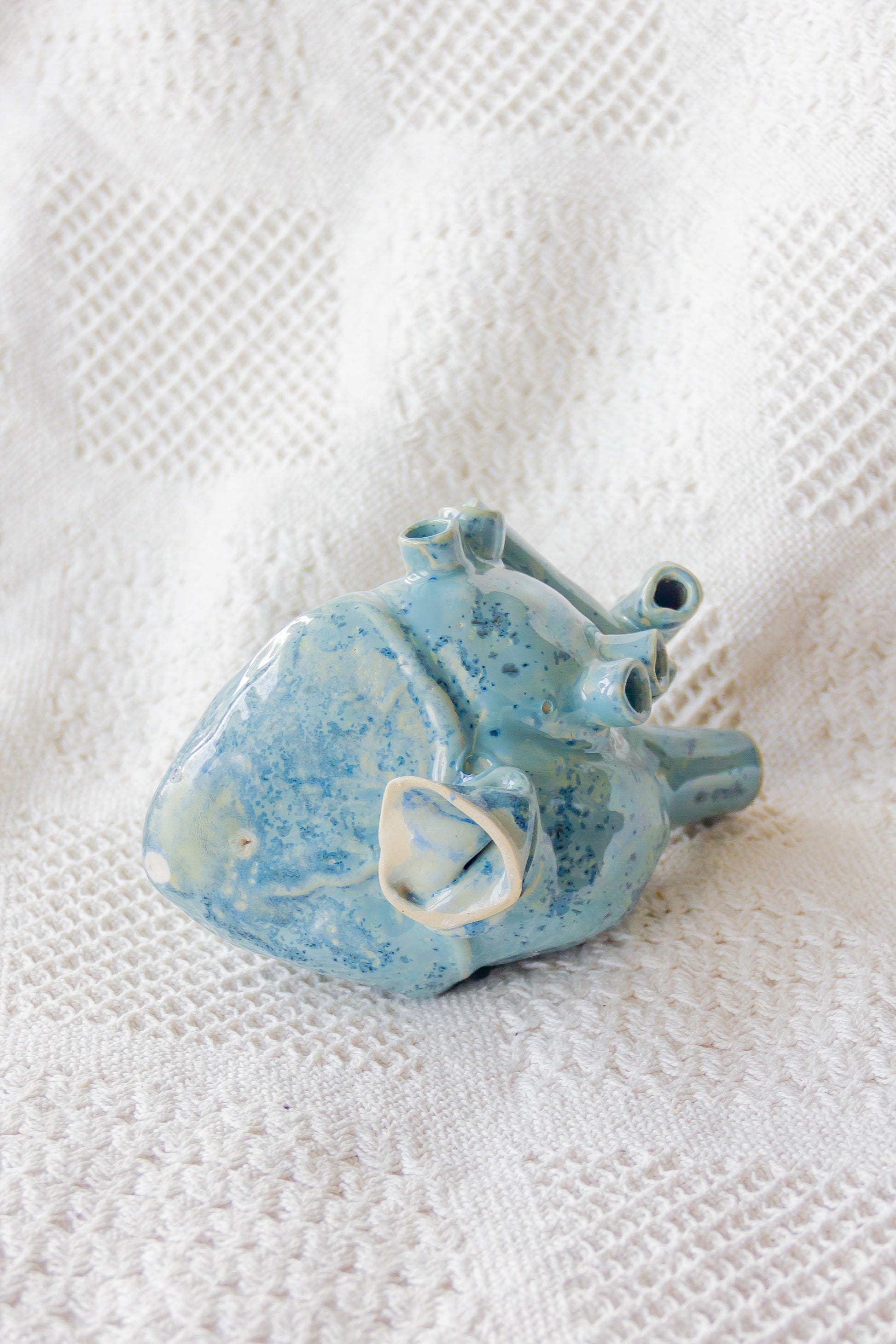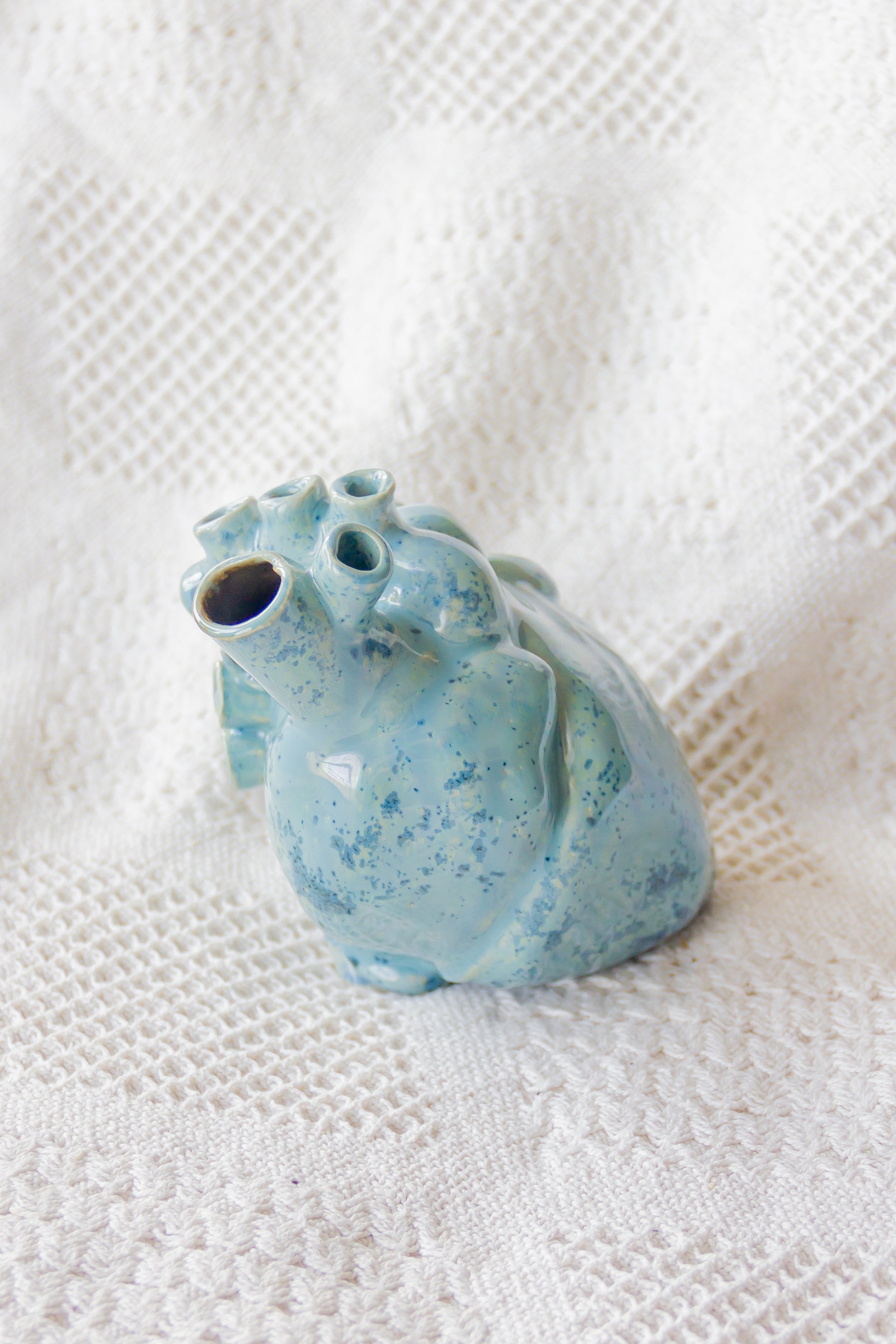 Serce ceramiczne dekoracyjne. Jest szkliwione w środku i ma otwór lub kilka otworów w „żyłach”, dlatego może być również wykorzystywane jako wazon.