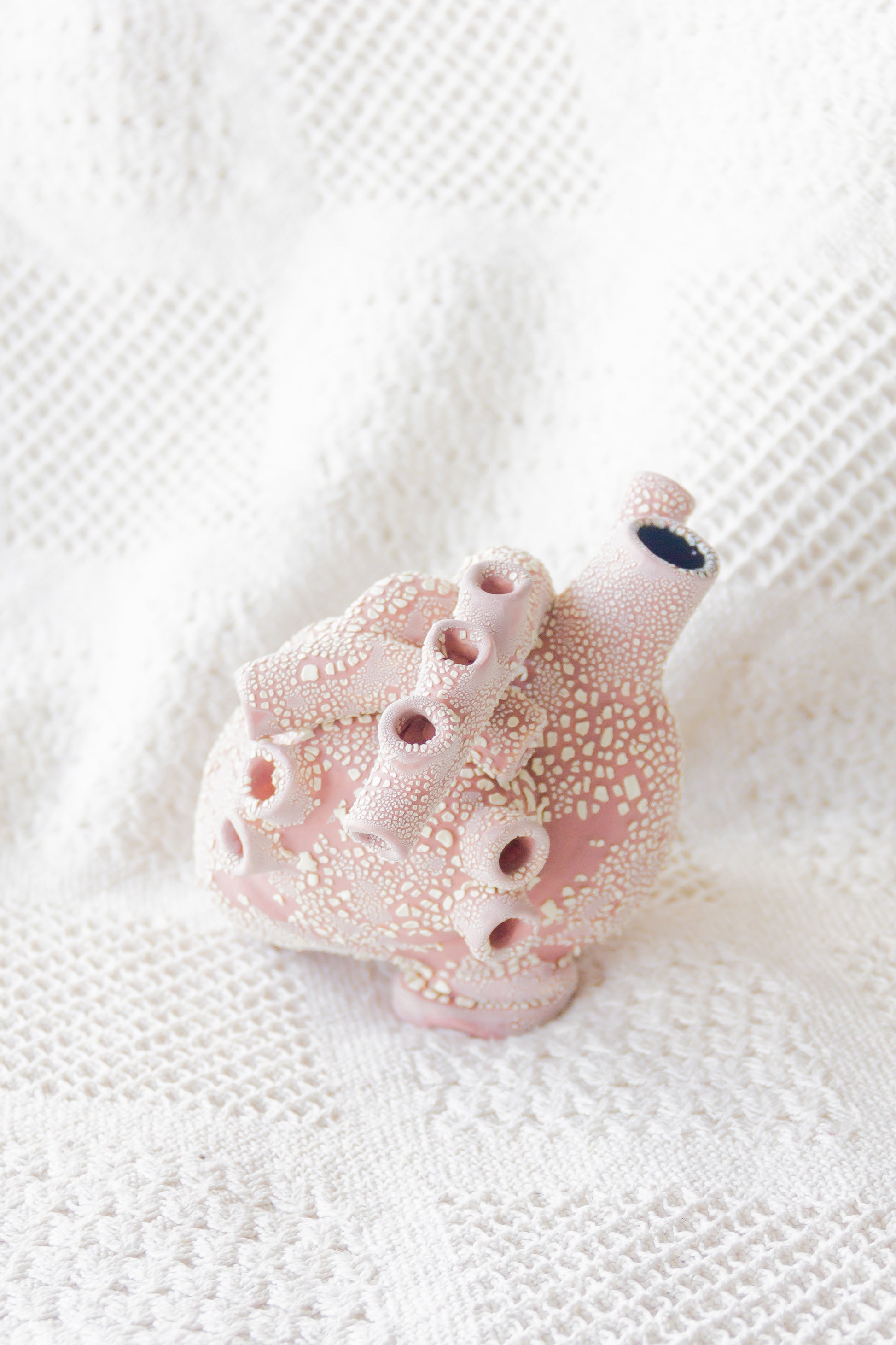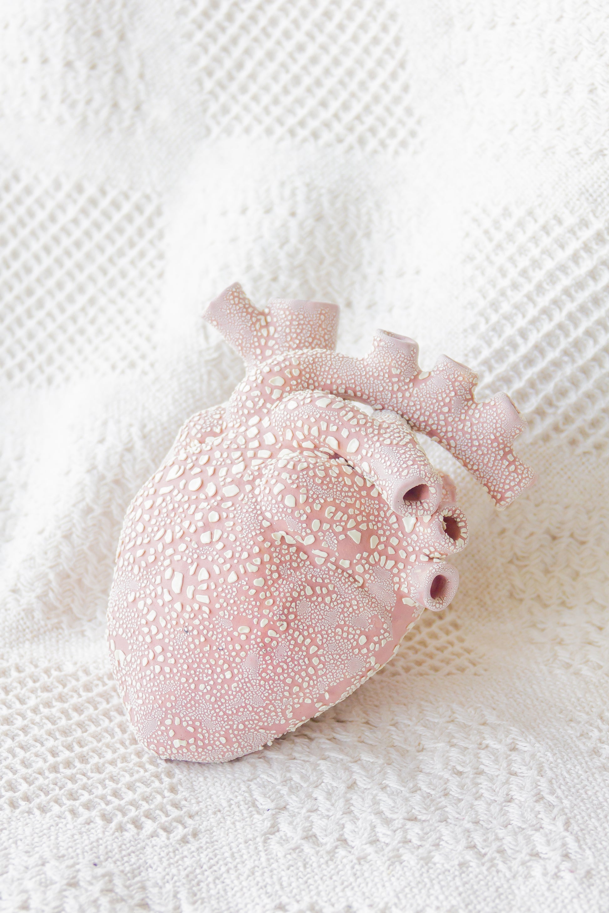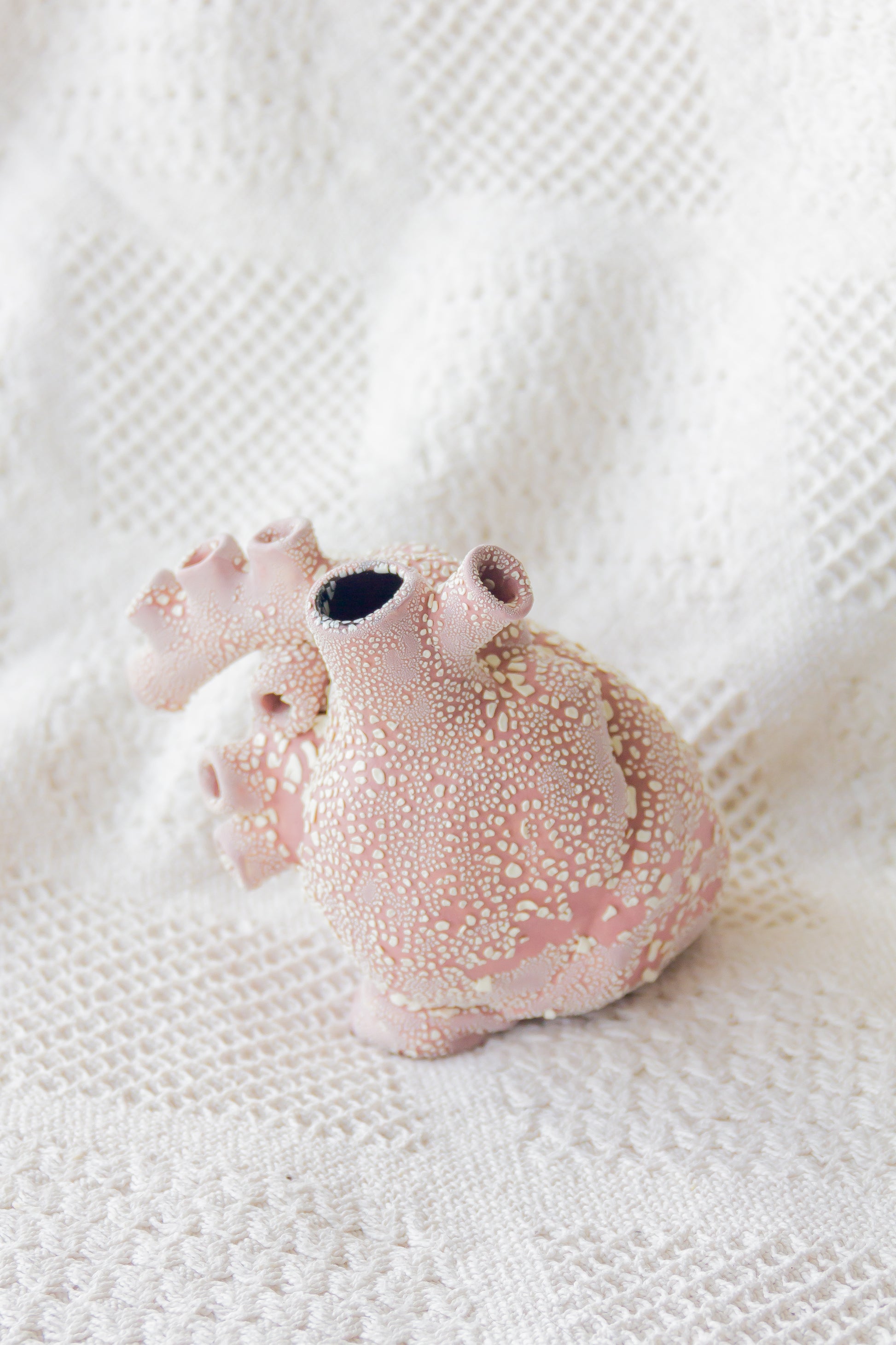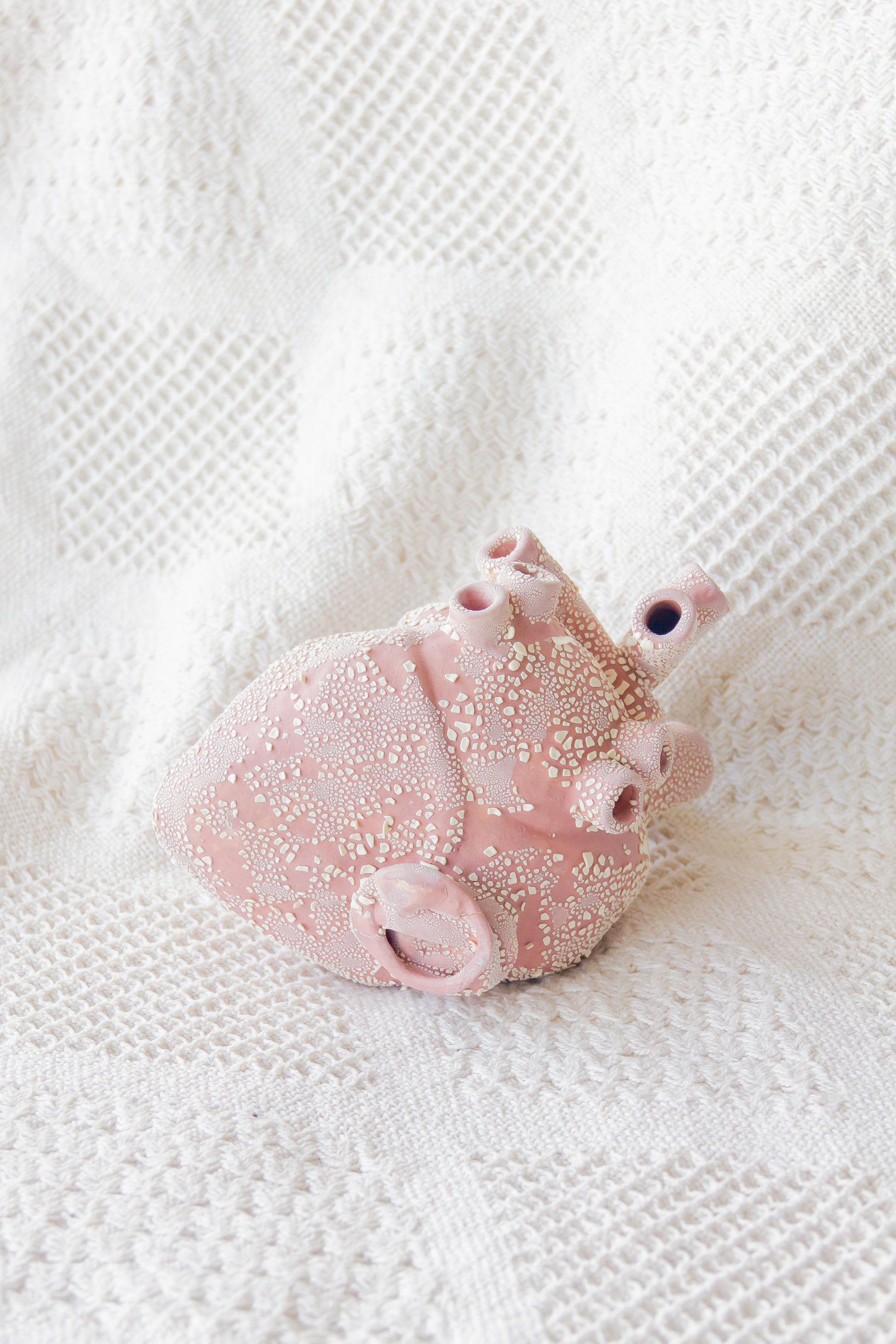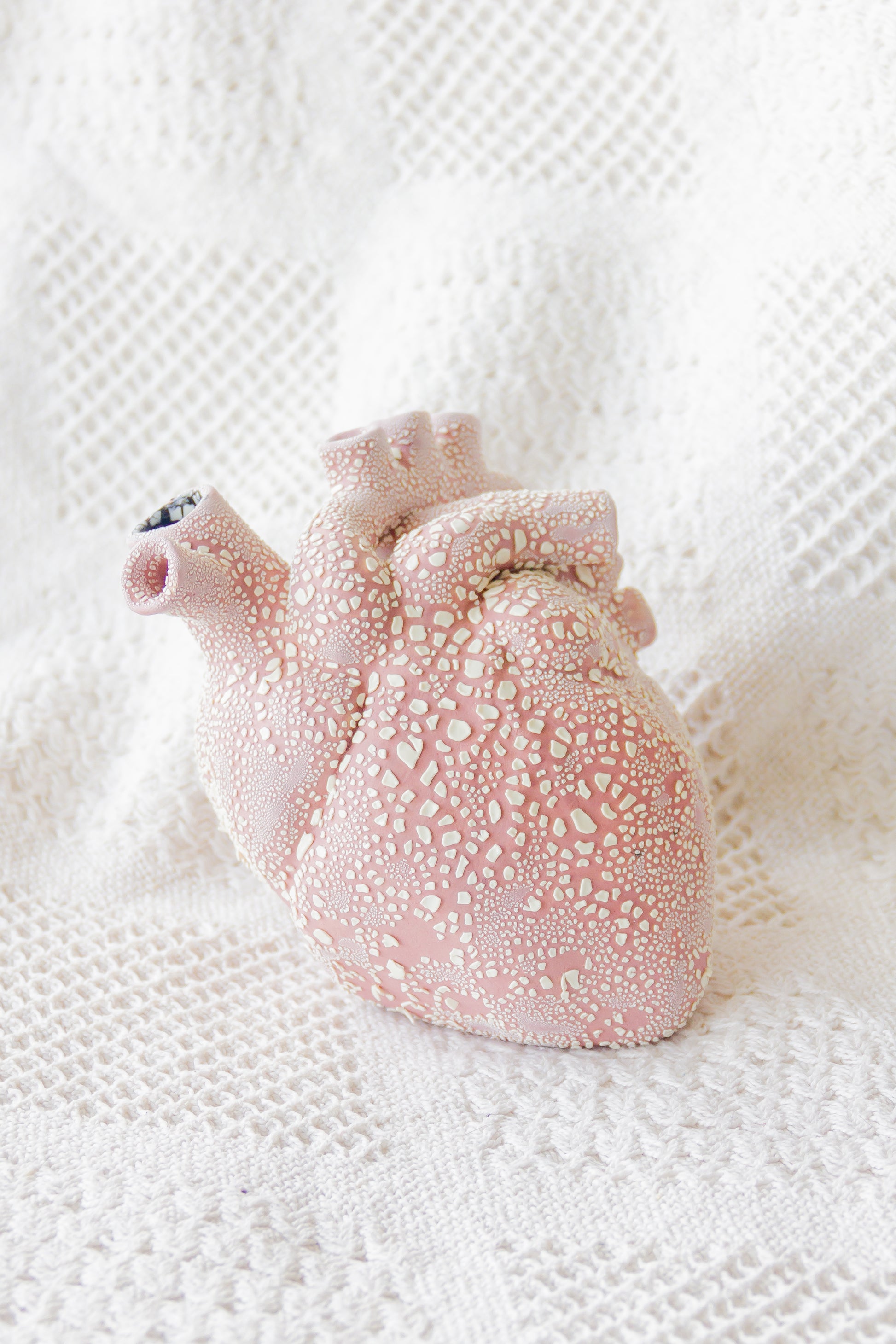 Serce ceramiczne dekoracyjne. Jest szkliwione w środku i ma otwór lub kilka otworów w „żyłach”, dlatego może być również wykorzystywane jako wazon.