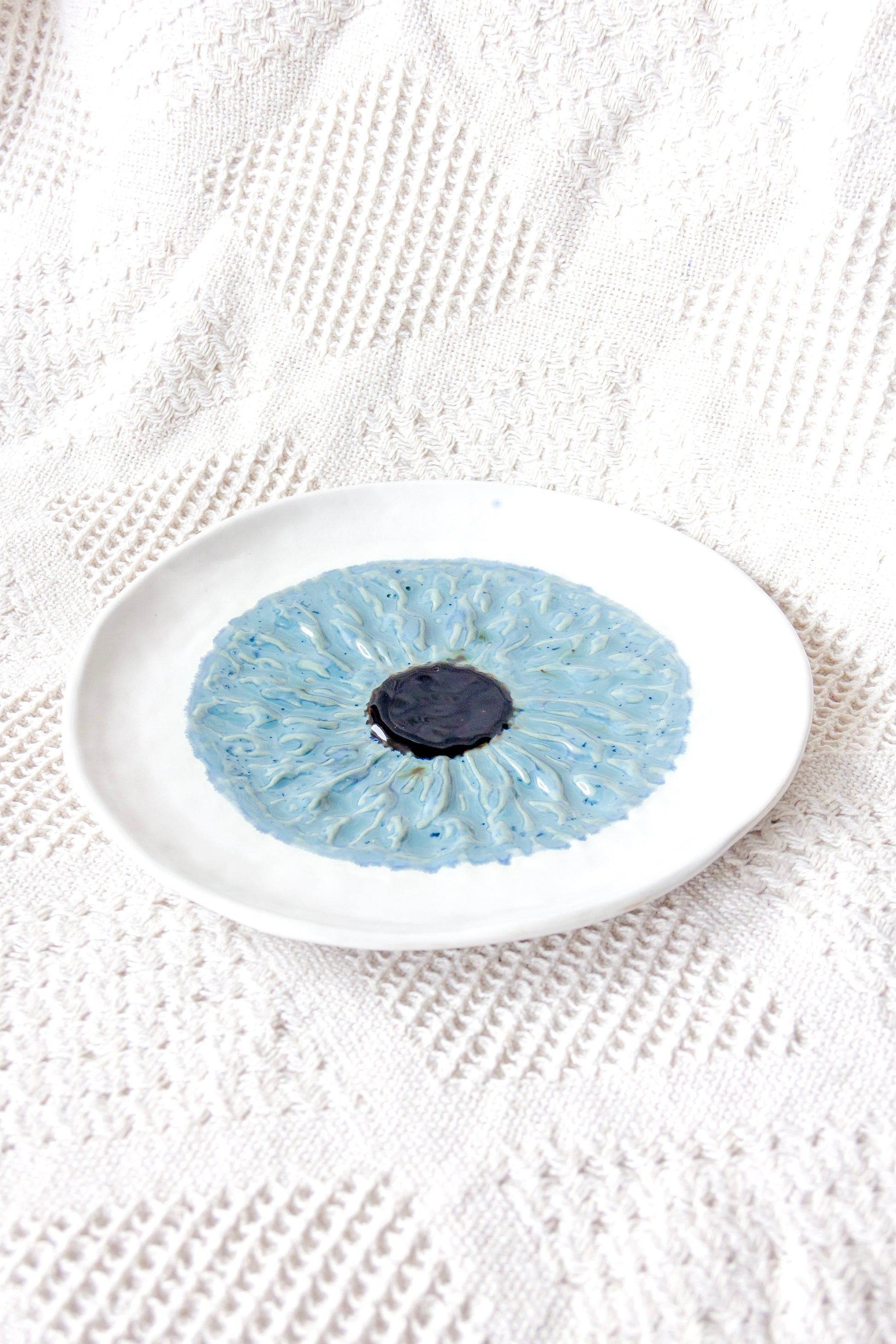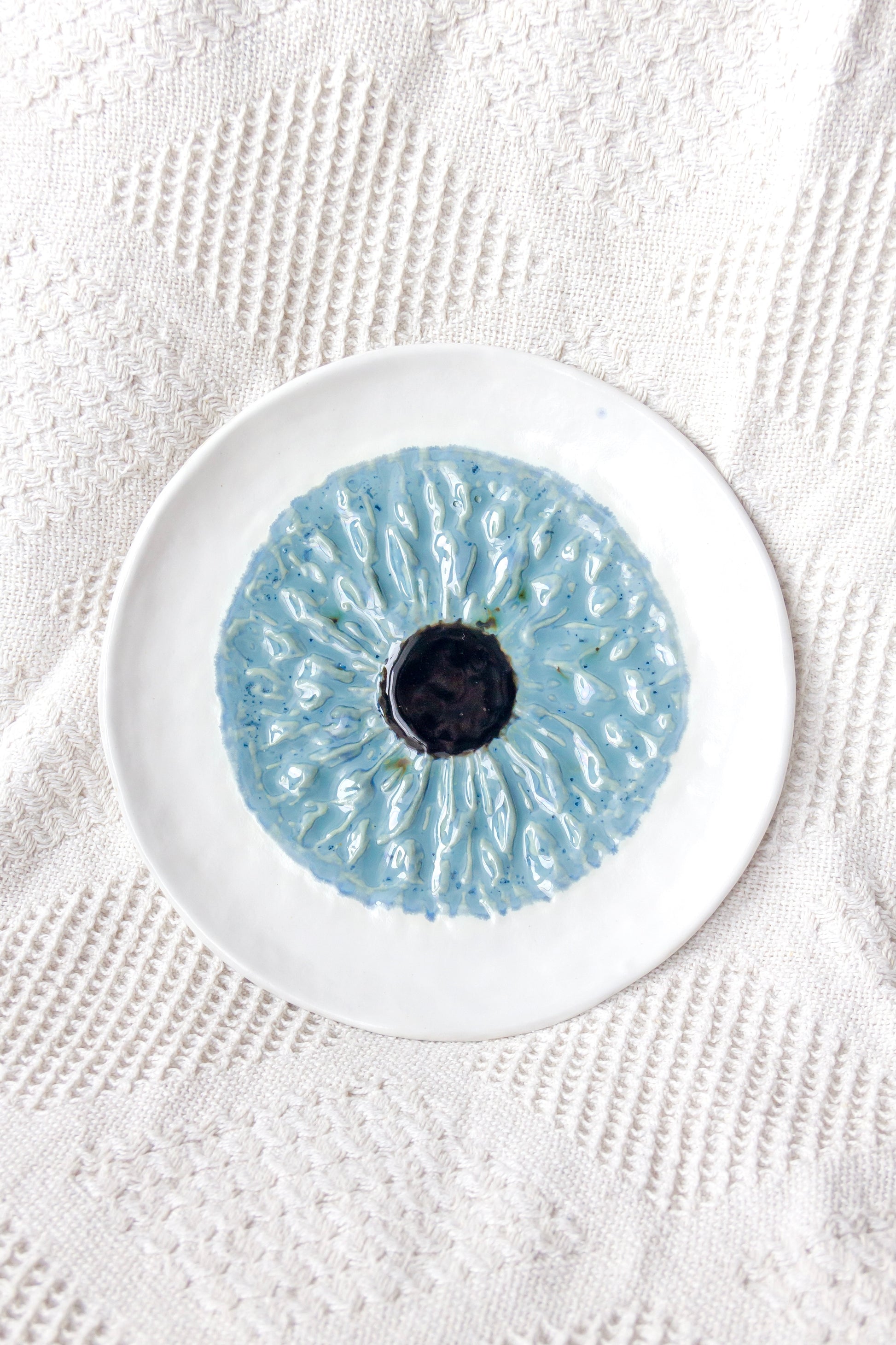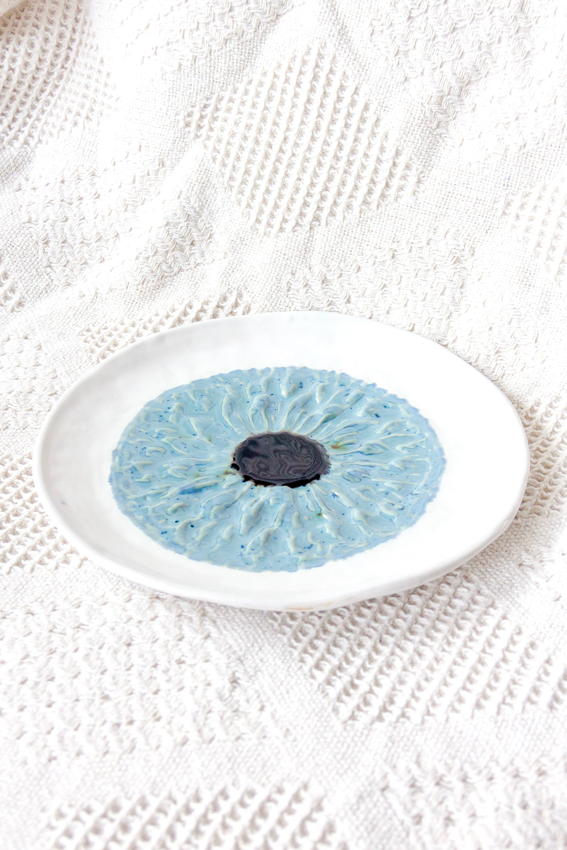 Talerz ceramiczny „Źrenica” biało-niebieski