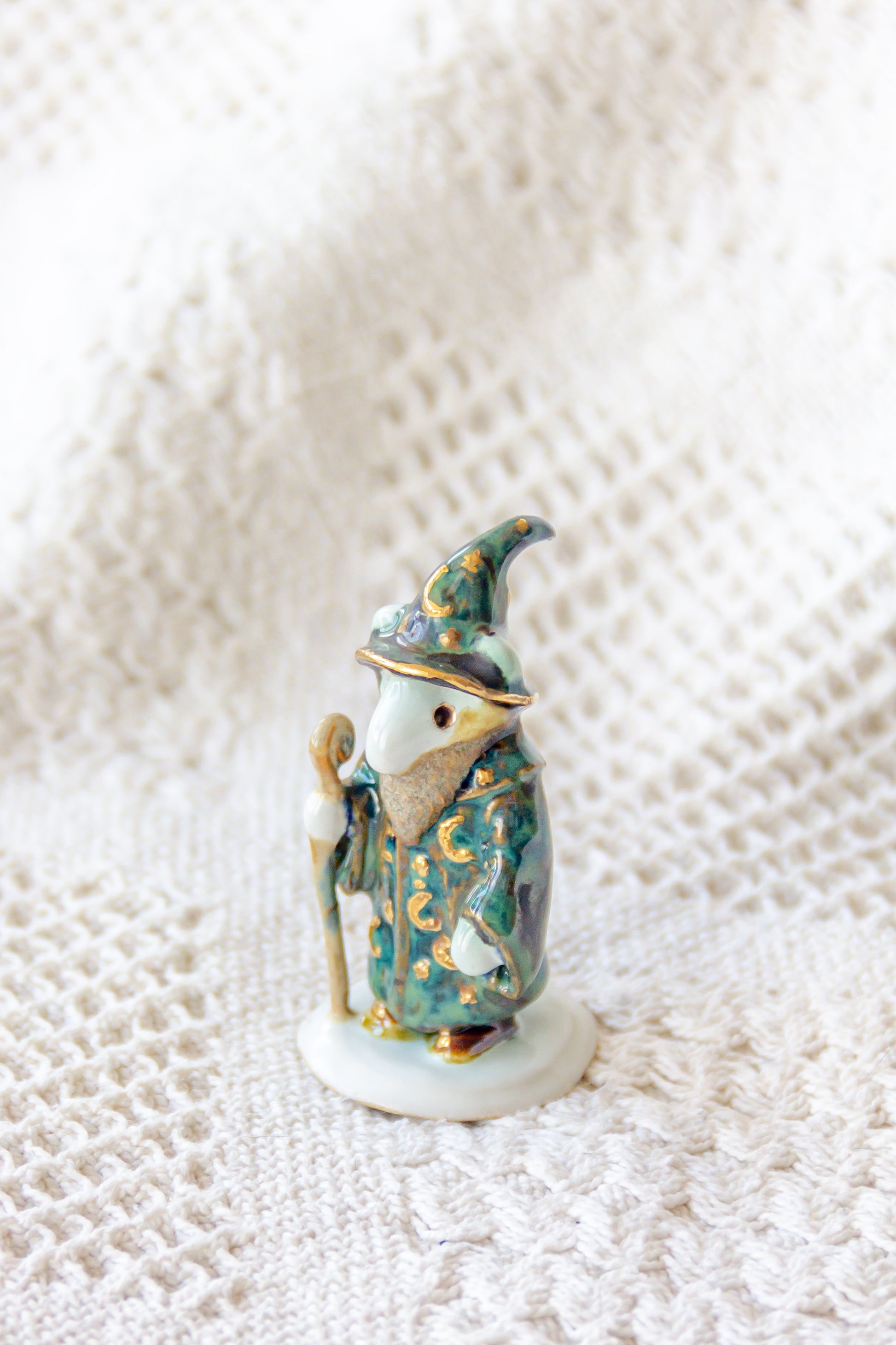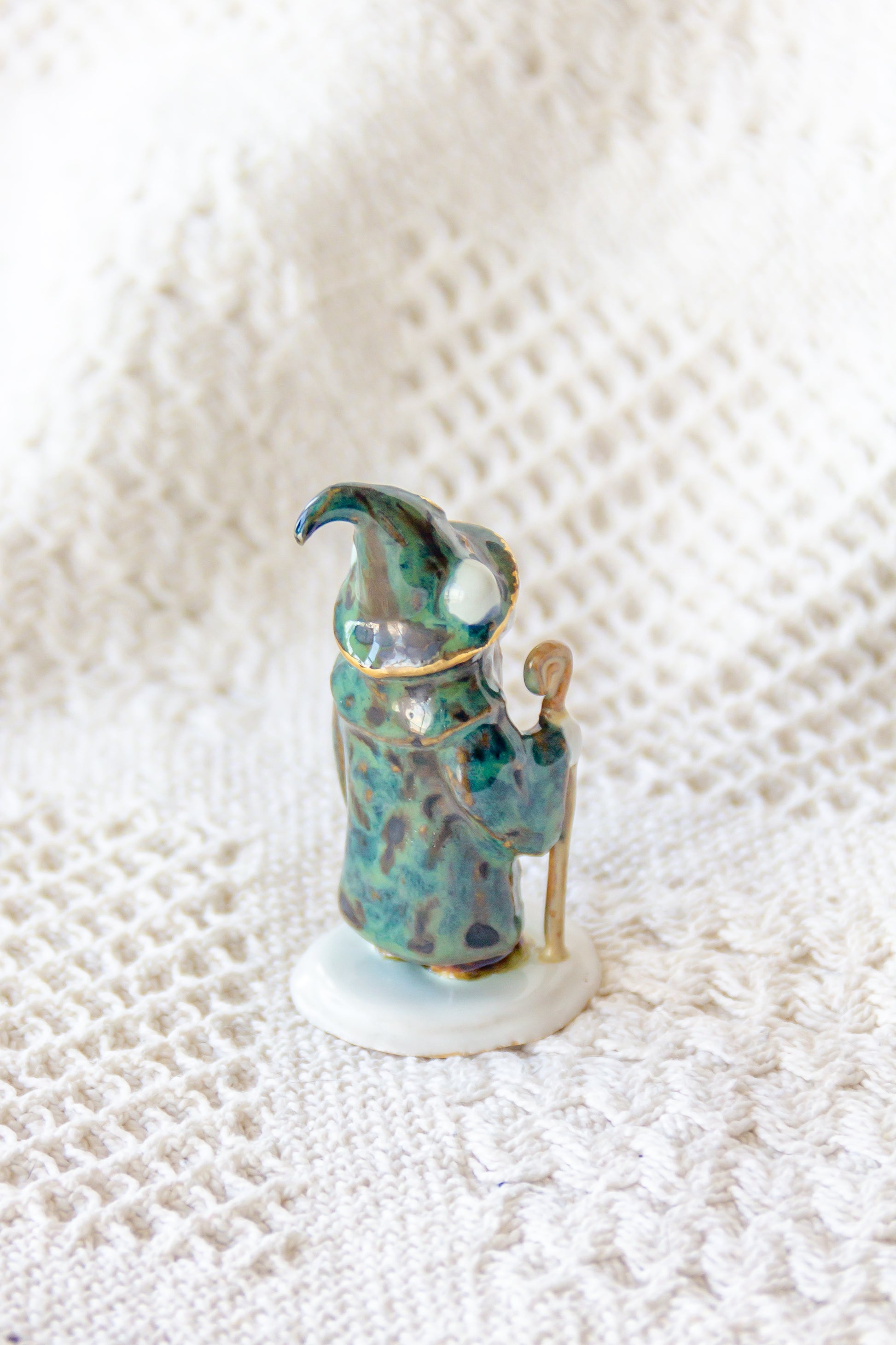 Werling czarodziej, rzeźba ceramiczna ze złoceniem